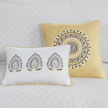 Isla 8 Piece Cotton Floral Printed Reversible Comforter Set - Yellow - King