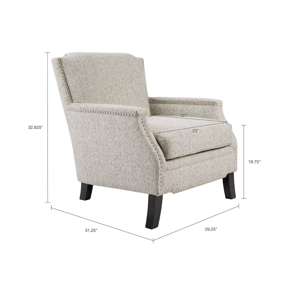 Add style and functionality to your living room with the Jacques accent chair. Its unique chair rail and back design helps it to accentuate any existing home decor. Leg assembly required.