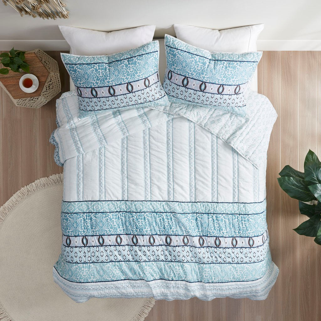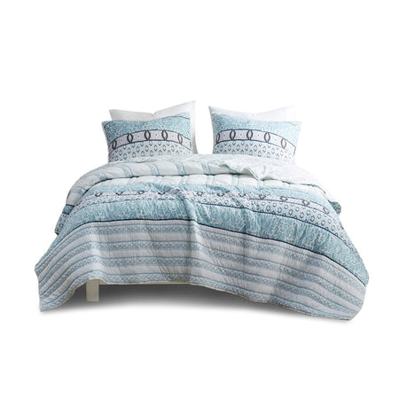 Kamila 3 Piece Reversible Cotton Coverlet Set - Blue - King Size / Cal King Size