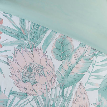 Keilani 3 Piece Cotton Printed Duvet Cover Set - Aqua - King Size / Cal King Size