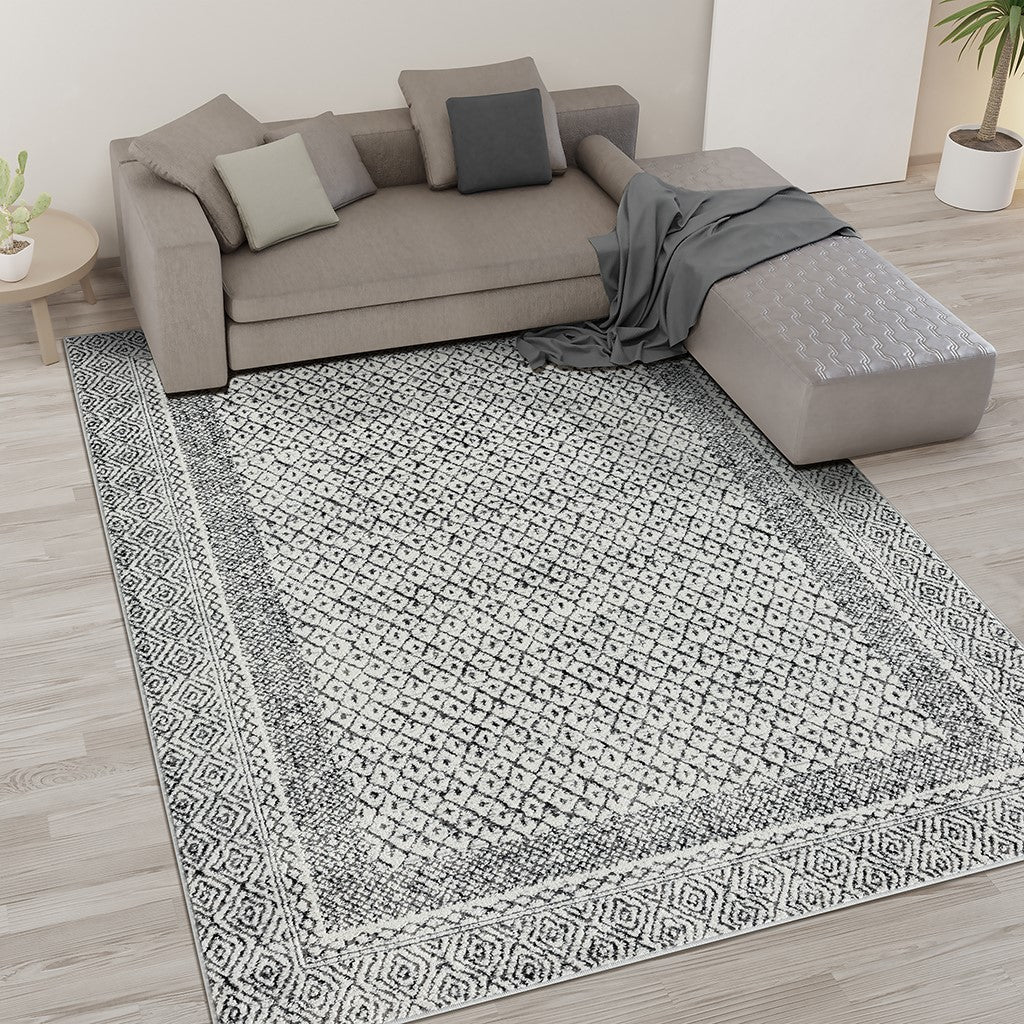 Complete any space in your home with Madison Park's Kenzie Moroccan Bordered Global Grey and Cream, Area Rug. Made in Turkey, this area rug features a Moroccan-inspired pattern with a border design in soft grey and cream hues, for a chic contrasting look. The soft, medium pile makes the woven rug well suited for high traffic areas, while the transparent sprayed latex reverse helps keep the rug from sliding. A rug pad is still highly recommended to keep the rug in place. Stain and fade resistant, this woven area rug is OEKO-TEX certified, meaning it does not contain any harmful substances or chemicals to ensure quality comfort and wellness. Rug is available in multiple sizes, which makes it perfect for your living room, family room, or entryways. To clean, use a vacuum or spot clean.