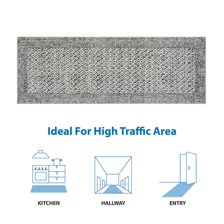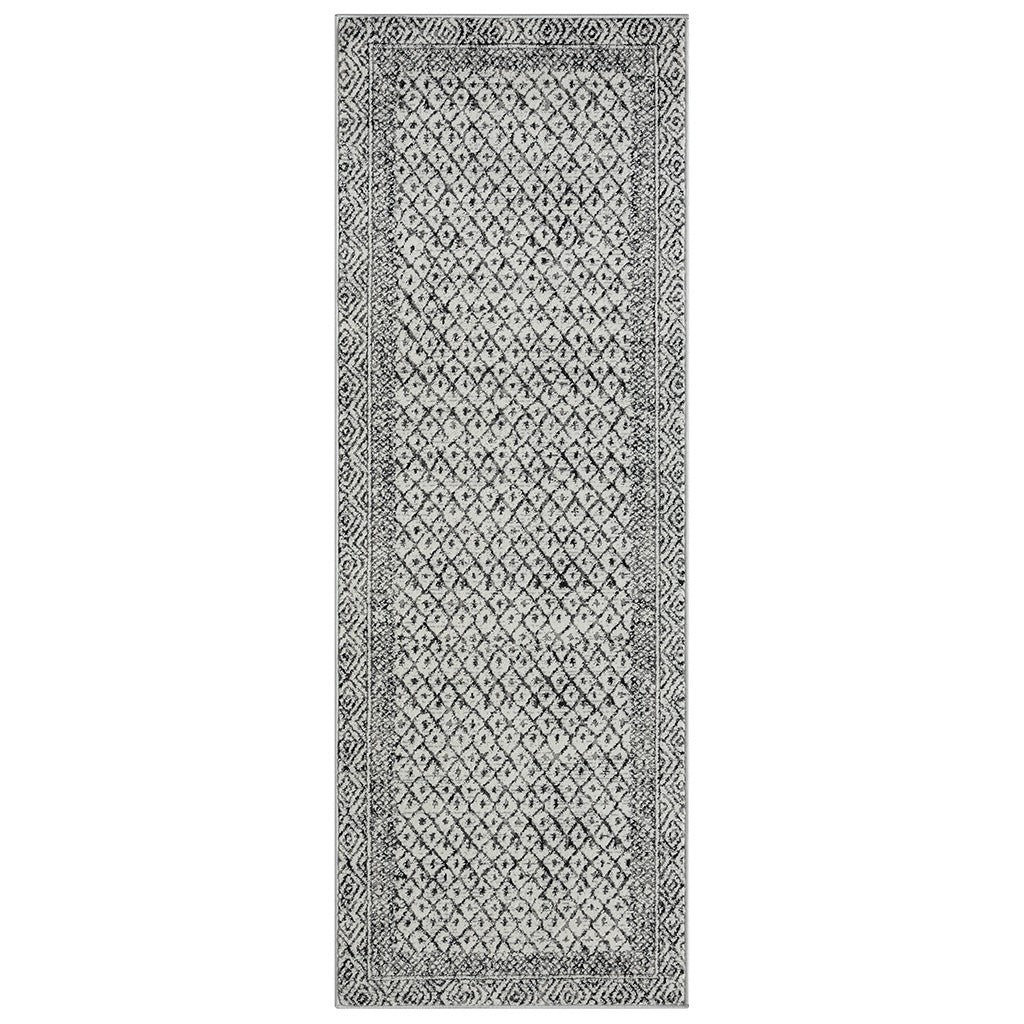 Kenzie Moroccan Bordered Global Woven Area Rug - Grey / Cream - 3x8' Runner
