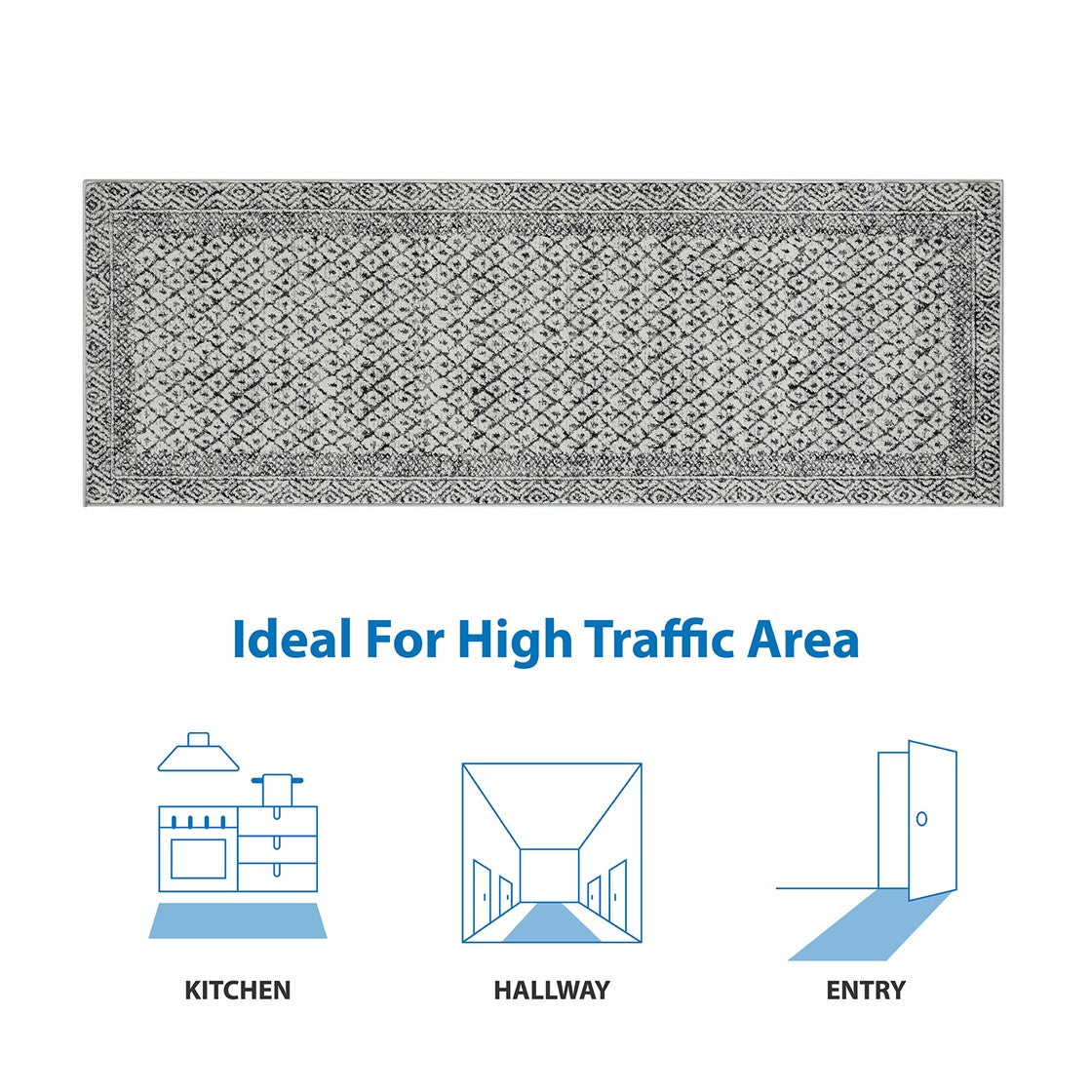 Complete any space in your home with Madison Park's Kenzie Moroccan Bordered Global Grey and Cream, Area Rug. Made in Turkey, this area rug features a Moroccan-inspired pattern with a border design in soft grey and cream hues, for a chic contrasting look. The soft, medium pile makes the woven rug well suited for high traffic areas, while the transparent sprayed latex reverse helps keep the rug from sliding. A rug pad is still highly recommended to keep the rug in place. Stain and fade resistant, this woven area rug is OEKO-TEX certified, meaning it does not contain any harmful substances or chemicals to ensure quality comfort and wellness. Rug is available in multiple sizes, which makes it perfect for your living room, family room, or entryways. To clean, use a vacuum or spot clean.