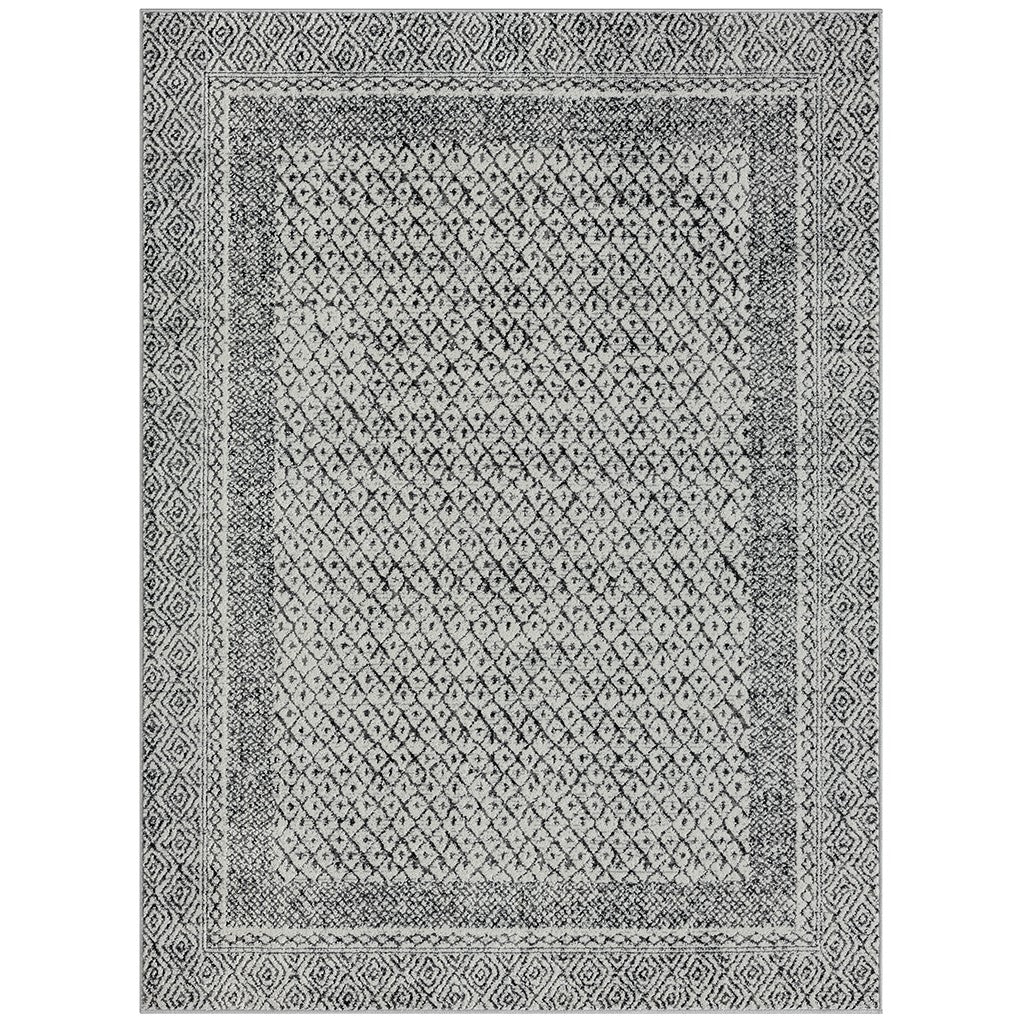 Kenzie Moroccan Bordered Global Woven Area Rug - Grey / Cream - 5x7'