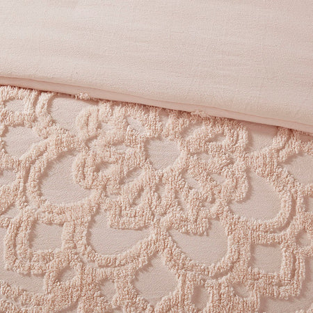 Laetitia 3-Piece Tufted Cotton Chenille Medallion Duvet Cover Set - Blush - Full Size / Queen Size