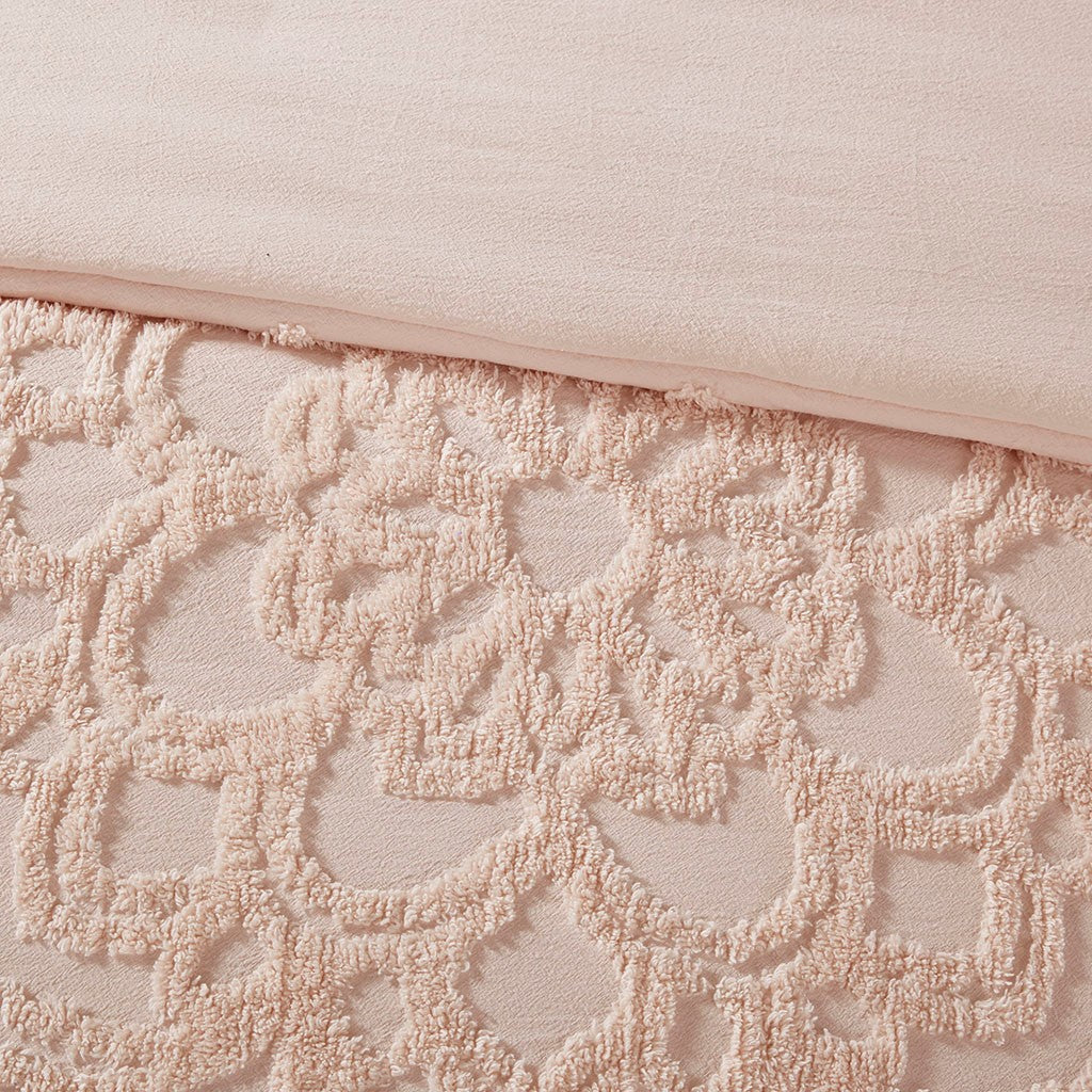 Laetitia 3-Piece Tufted Cotton Chenille Medallion Duvet Cover Set - Blush - King Size / Cal King Size
