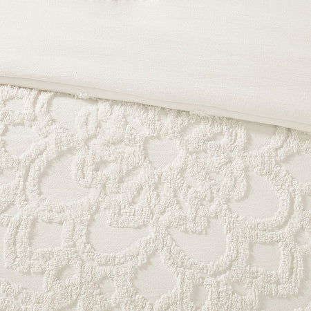 Laetitia 3-Piece Tufted Cotton Chenille Medallion Duvet Cover Set - Off White - Full Size / Queen Size
