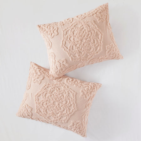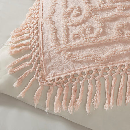 Laetitia Tufted Cotton Chenille Medallion Fringe Coverlet Mini Set - Blush - Full Size / Queen Size