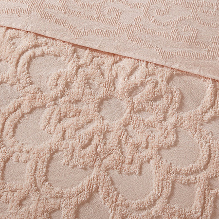 Laetitia Tufted Cotton Chenille Medallion Fringe Coverlet Mini Set - Blush - King Size / Cal King Size