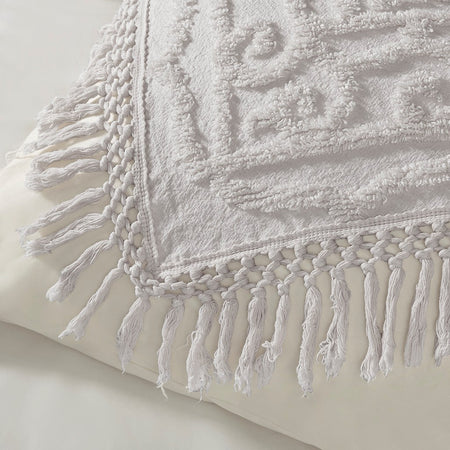 The Madison Park Laetitia Tufted Cotton Chenille Medallion Fringe Coverlet Set provides an alluring shabby chic update to your bedroom. This globally inspired coverlet features a 100% cotton face and reverse with a tufted chenille medallion centered on top of the bed. A decorative fringe hem adds dimension, while 2 matching shams (1 in Twin/Twin XL) complete the boho look. Perfect for all season use, this bedding set is also OEKO-TEX certified, meaning it does not contain any harmful substances or chemicals to ensure quality comfort and wellness. Due to the nature of the chenille fabric, some shedding will occur naturally in the first 3-4 washes.