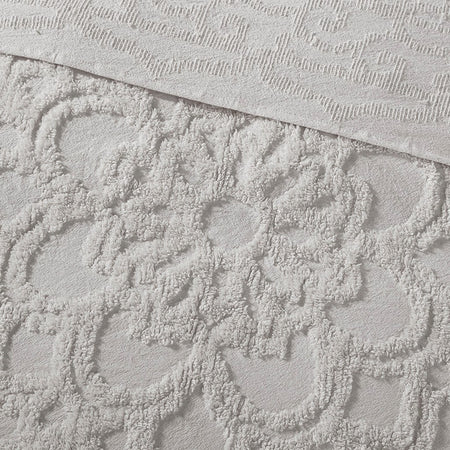Laetitia Tufted Cotton Chenille Medallion Fringe Coverlet Mini Set - Grey - King Size / Cal King Size