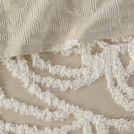 Laetitia Tufted Cotton Chenille Medallion Fringe Coverlet Mini Set - Taupe - King Size / Cal King Size