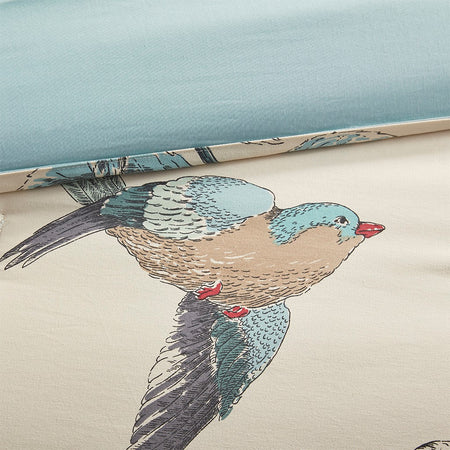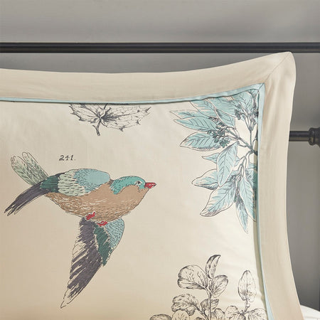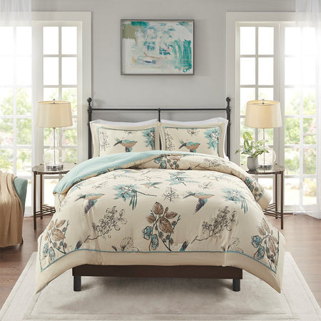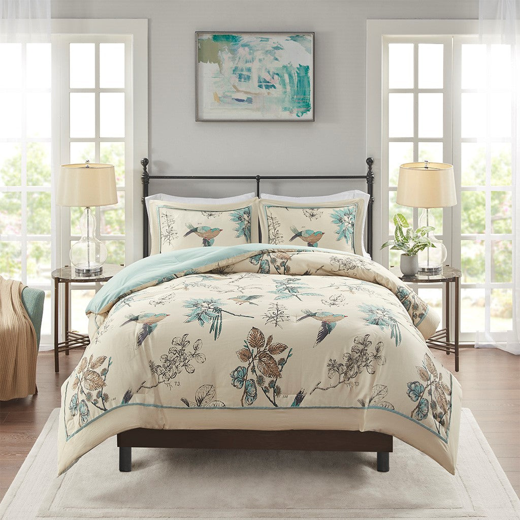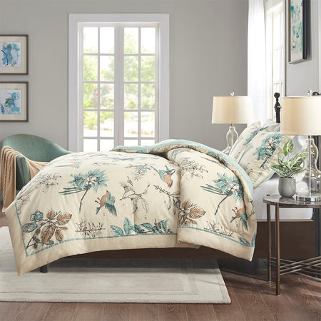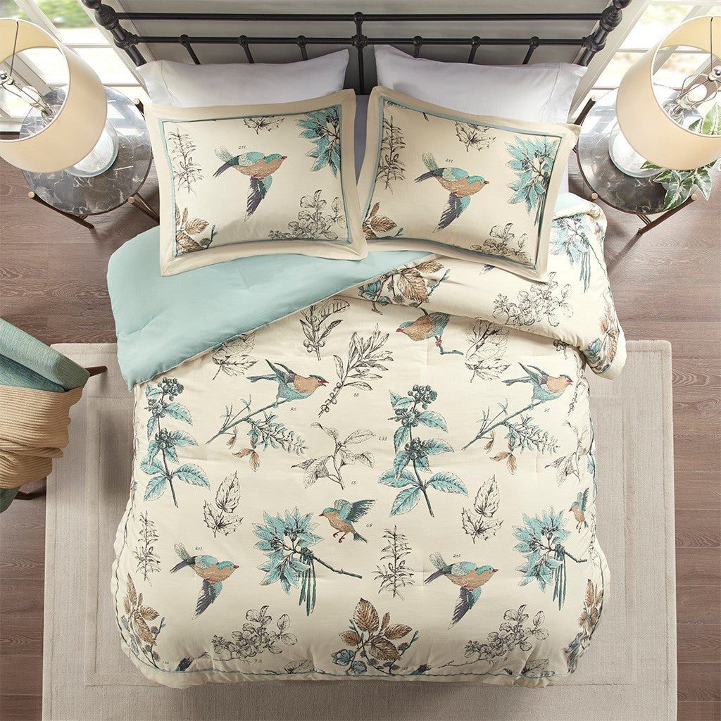 The Madison Park Lark 3 Piece Comforter Set brings a warm country update to your bedroom. This cotton twill comforter features a classic leaf and bird print on the face with a solid reverse that adds a splash of color to the cottage look. Two matching shams pair perfectly with the comforter.