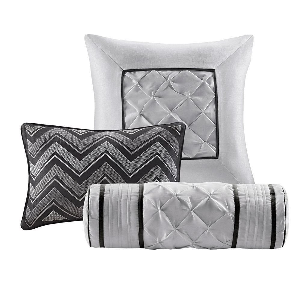 - Set includes 1 comforter, 2 matching shams, 3 decorative pillows and 1 bed skirt