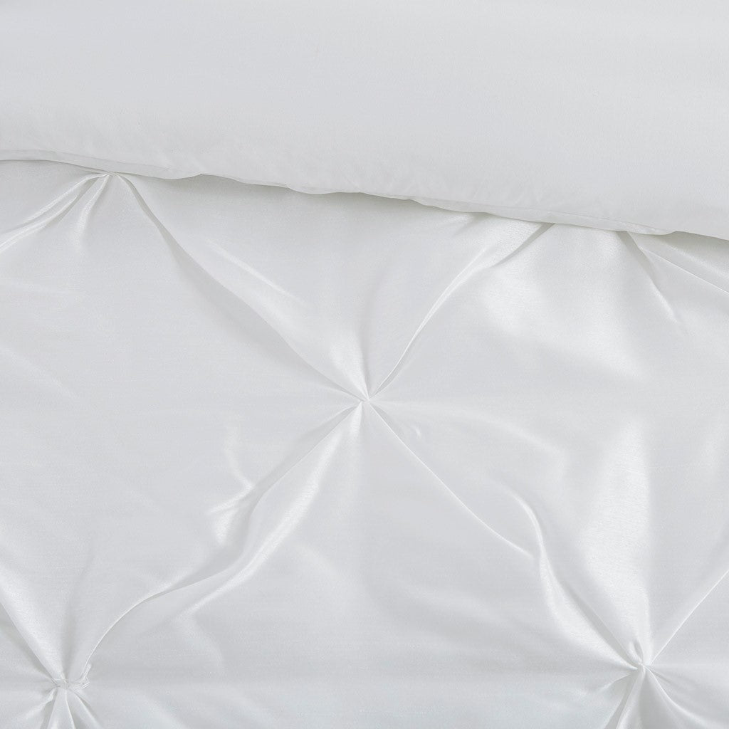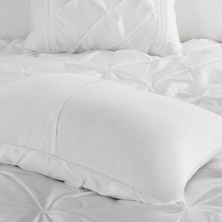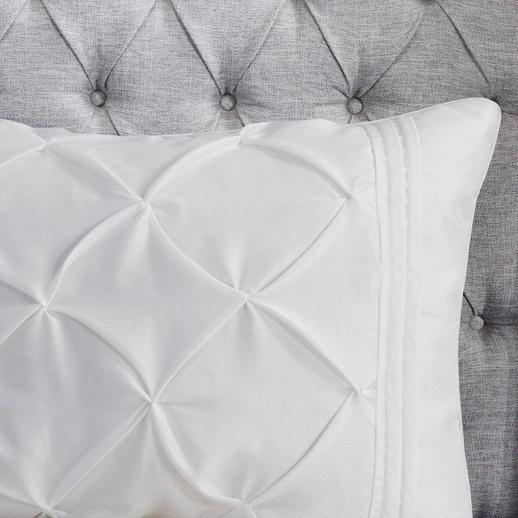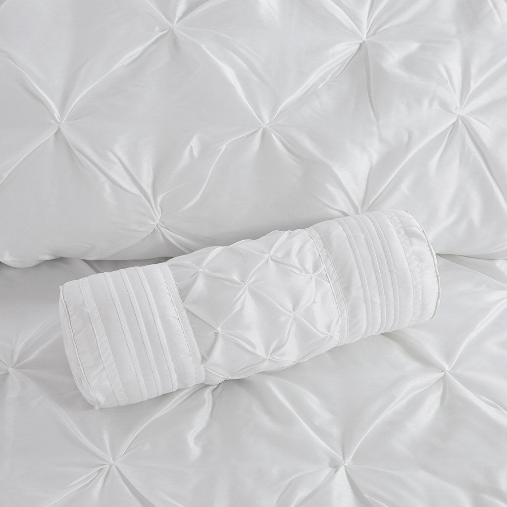 This beautifully tufted bed is from the Laurel bedding collection. Its white coloring makes this set easy to accessorize in your bedroom. The collection is made from 100% polyester polyoni and has pieced fabric sewn together to give this set added dimension. It is finished with a smooth edge of fabric that creates a beautiful border around this comforter. Items in the set may come in a rolled or compressed packaging, which will need to be fluffed up or steam ironed before use to remove wrinkles.