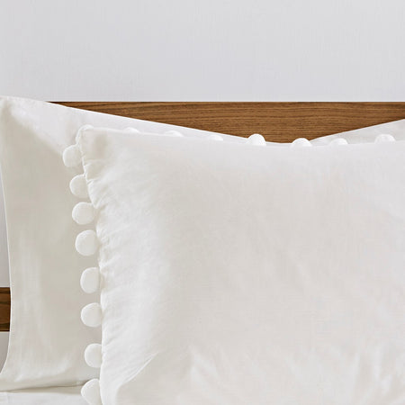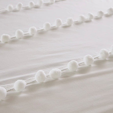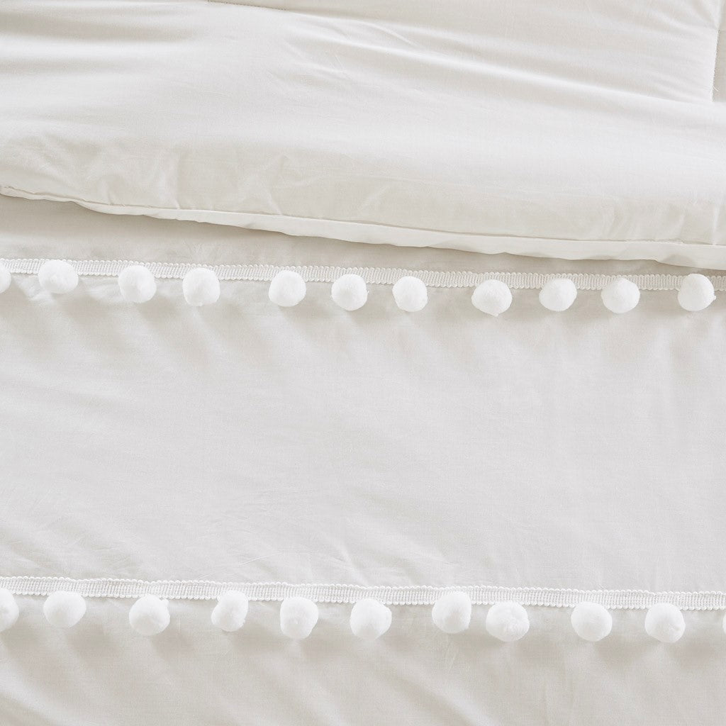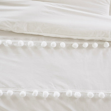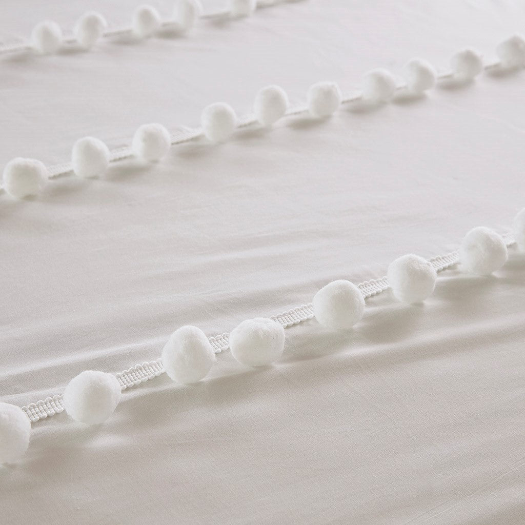 Leona 3 Piece Pom Pom Cotton Comforter Set - Ivory - King Size / California King Size