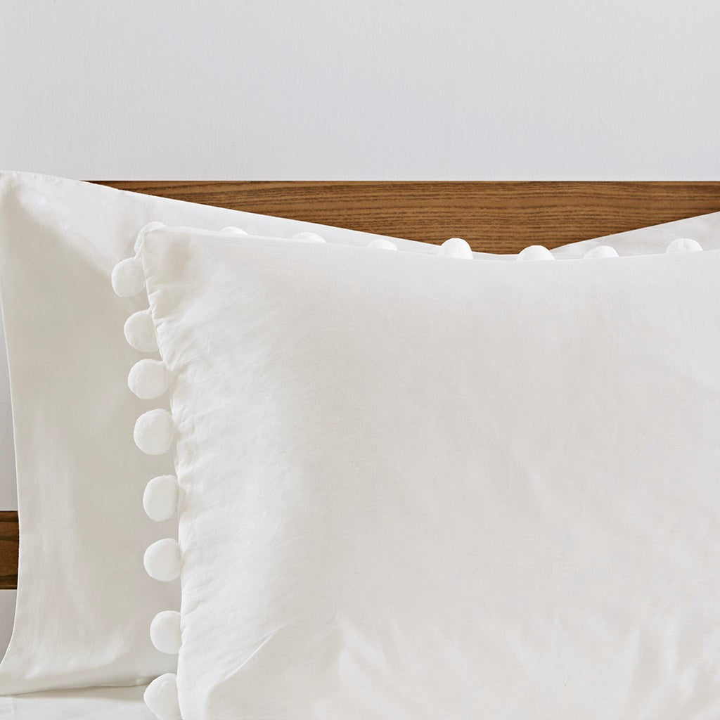 The Madison Park Leona 3 Piece Pom Pom Comforter Set offers a simple chic update to your bedroom decor. Made from 100% cotton, the face of this ivory comforter features stripes of pompoms that add texture and dimension for a boho inspired look. The matching cotton shams flaunts a pompom trim to complement the top of the bed. Hypoallergenic filling in the comforter provides exceptional warmth and comfort. Machine washable for easy care, this pompom comforter set gives your bed a casual yet chic style to turn your bedroom into a relaxing space.
