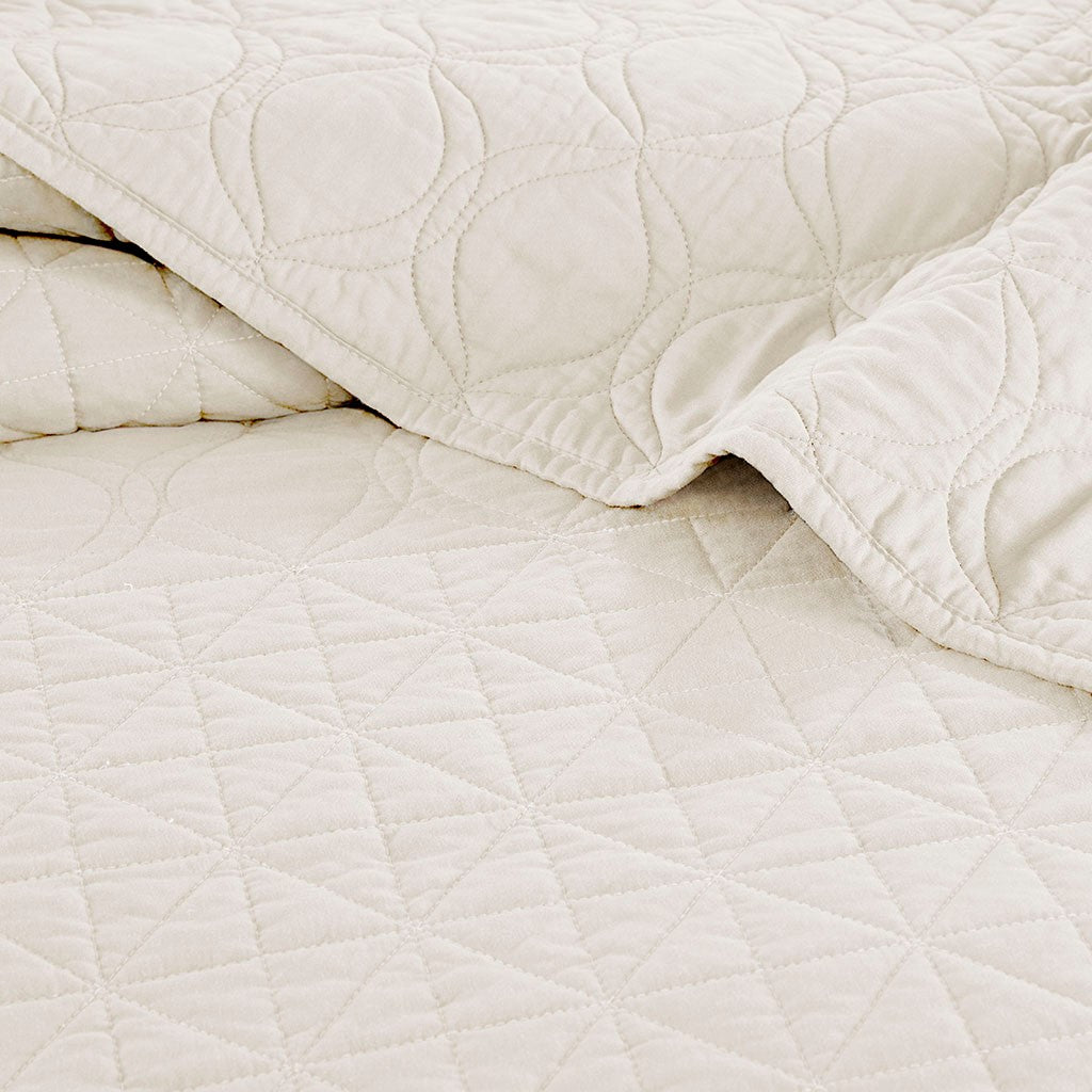 The Madison Park Linnette 3 Piece Reversible Coverlet Set offers a simple and elegant update to your bedroom. This cream quilted coverlet and matching shams feature two distinct quilting patterns that create an alluring textural look. A geometric design alternates with a circlet ogee pattern for added dimension and charm, while the prewashed fabric and cotton rich filling provide incredible softness and comfort. This coverlet also has an antimicrobial treatment that provides built-in freshness protection, reducing the growth of odor causing bacteria to keep fabric lasting longer.