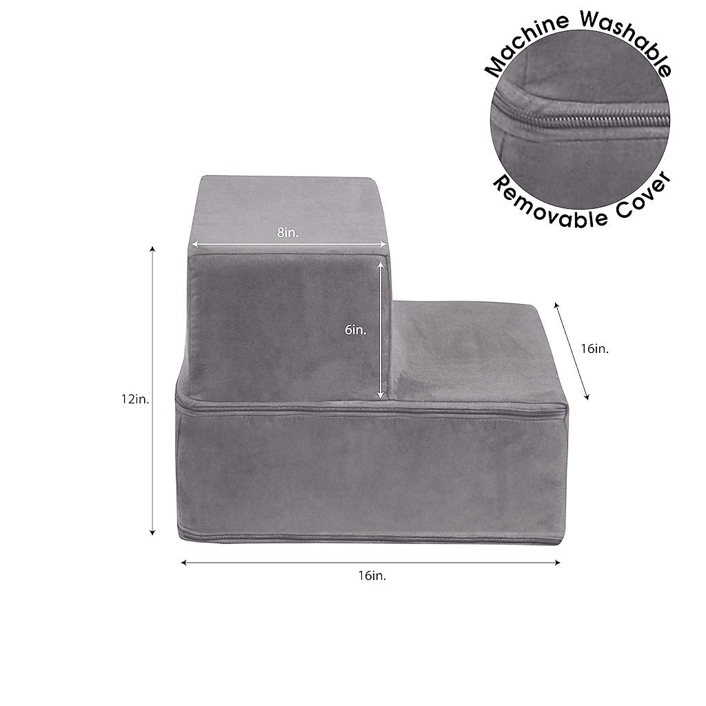 Make climbing easier and safer for your furry friend with the Madison Park Milo Stairs. Made with high-grade foam, this set of stairs helps to relieve pressure on the paws and joints when they try to reach a high bed or couch. The cover is removable and easy to clean using a washing machine with cold water. Available in 2-step, 3-step, and 4-step configurations to easily match the height of your furniture, these pet stairs come in 3 different colors to coordinate with your home decor. Items in the set may come in a rolled or compressed packaging, which will need to be fluffed up or steam ironed before use to remove wrinkles.