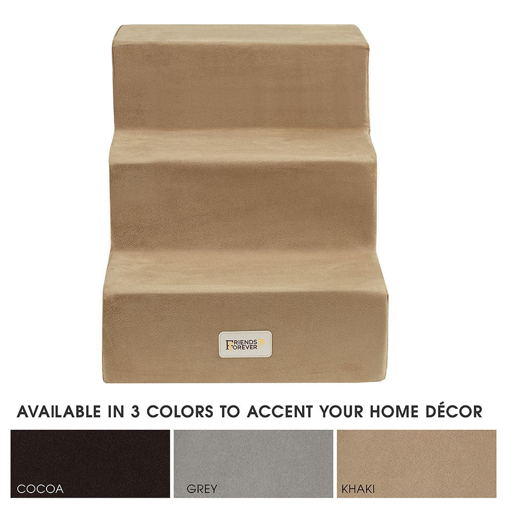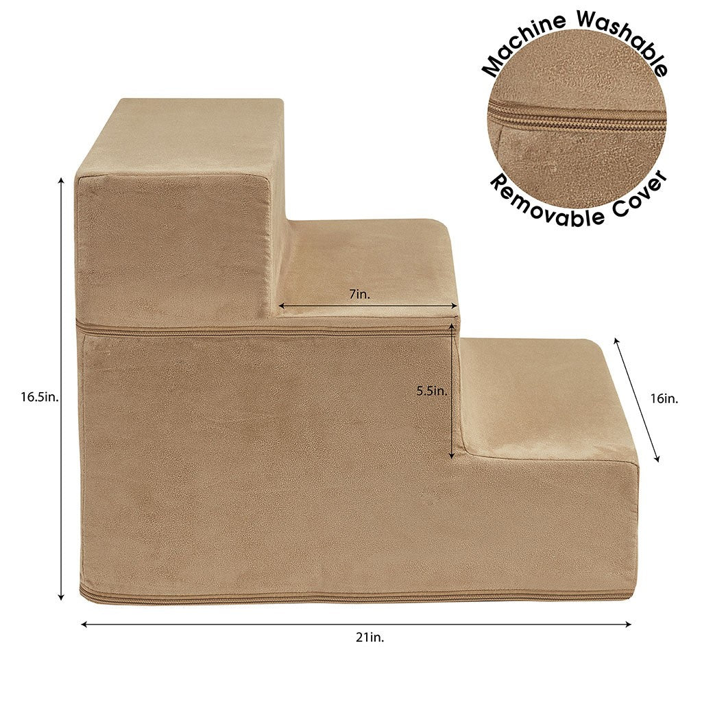 Make climbing easier and safer for your furry friend with the Madison Park Milo Stairs. Made with high-grade foam, this set of stairs helps to relieve pressure on the paws and joints when they try to reach a high bed or couch. The cover is removable and easy to clean using a washing machine with cold water. Available in 2-step, 3-step, and 4-step configurations to easily match the height of your furniture, these pet stairs come in 3 different colors to coordinate with your home decor. Items in the set may come in a rolled or compressed packaging, which will need to be fluffed up or steam ironed before use to remove wrinkles.