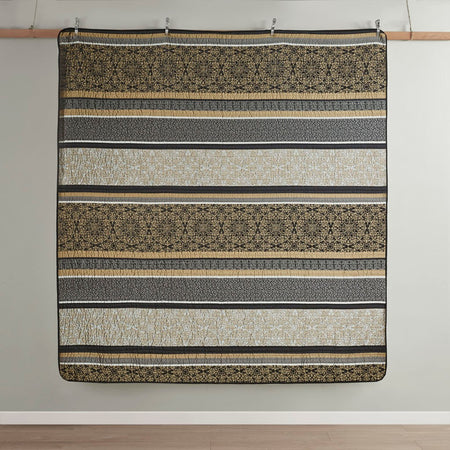 Dress your bed with the eclectic boho style of the Madison Park Miramar 3 Piece Reversible Cotton Coverlet Set. Flaunting a globally inspired medallion print, this cotton coverlet features a chic border design to accent the boho pattern on the face. A solid gray reverse complements the top of the reversible coverlet, while two matching shams complete the trendy transitional bedding set. Machine washable for easy care, this reversible cotton coverlet set has an antimicrobial treatment that provides built-in freshness protection, inhibits growth of odor causing bacteria, and keeps the fabric newer, longer.