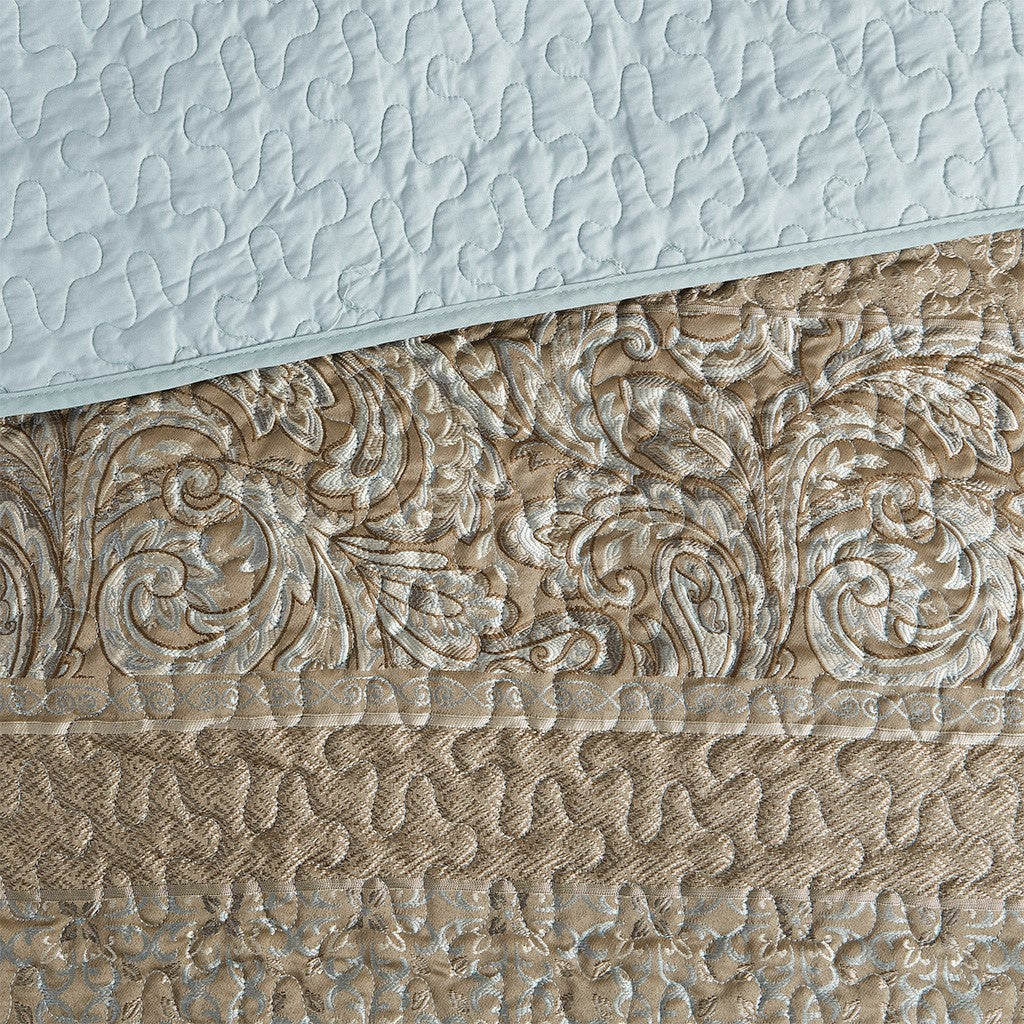 Miramar 3 Piece Reversible Cotton Coverlet Set - Teal - King Size / Cal King Size