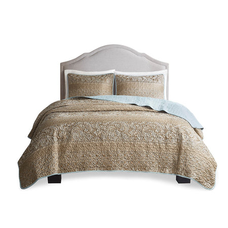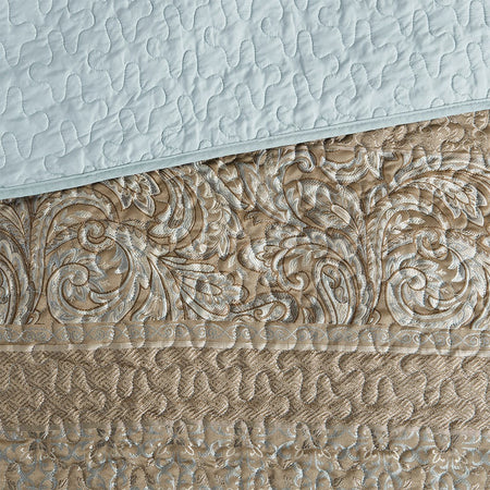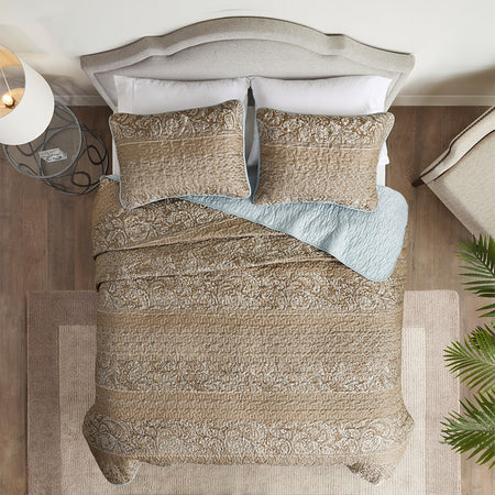 - Cotton printed 3 piece reversible coverlet set