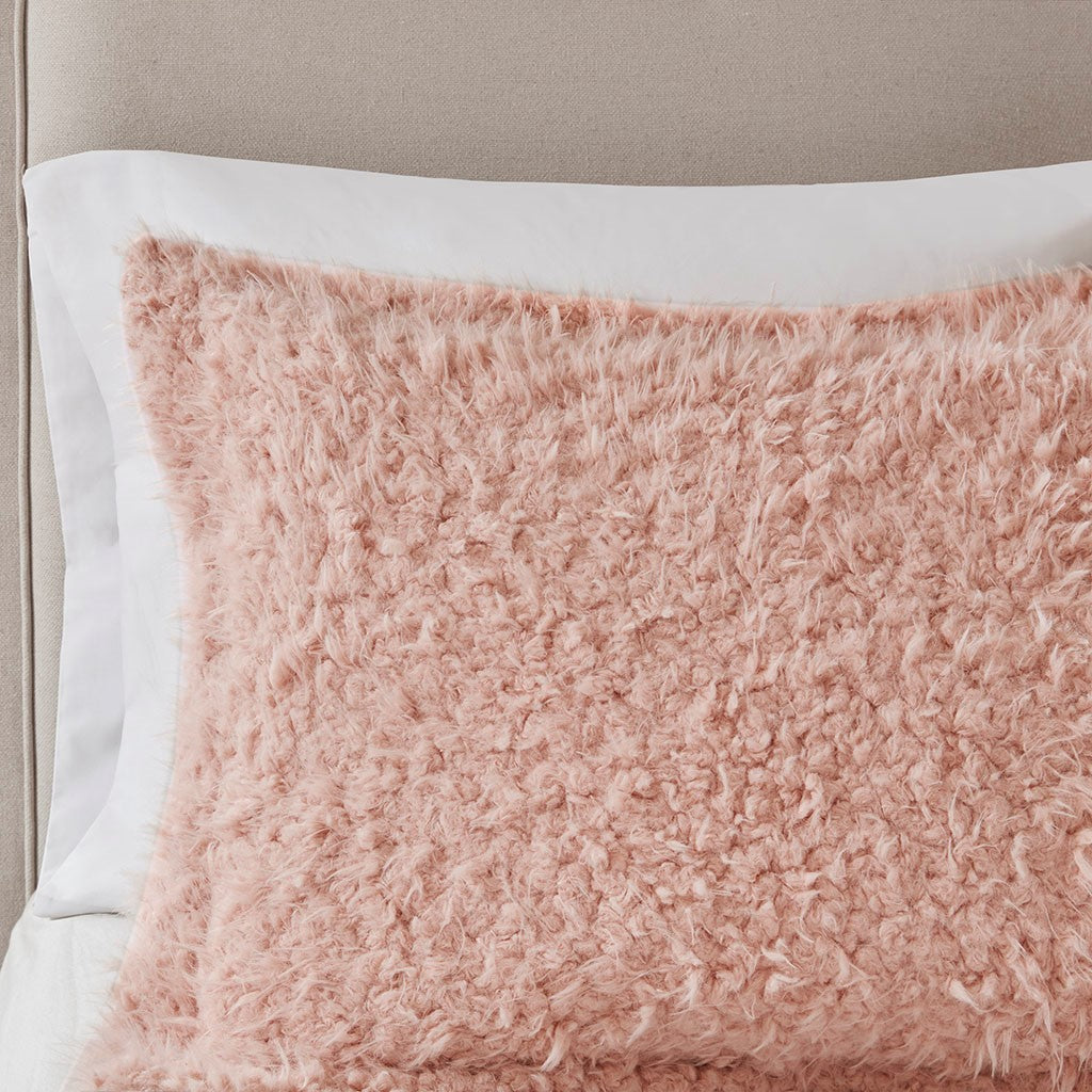 Nova Blush Faux Mohair Reverse Faux Mink Comforter Set - Blush - Full Size / Queen Size