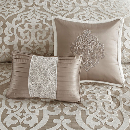 Odette 8 Piece Jacquard Comforter Set - Tan - Cal King Size