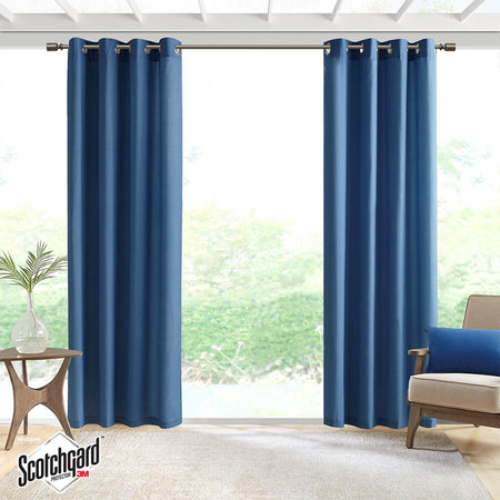 Perfect for your outdoor space, our weather resistant Madison Park Pacifica 3M Scotchgard panel adds simple color and style, while providing long-lasting protection. 3M Scotchgard treatment helps repel moisture, resist staining, and provide a durable water barrier that keeps fabric drier longer. Simply hang to stylishly separate your space, enhance privacy, or filter the right amount of light for comfort. Machine washable cold for easy care, due to the nature of this fabric, requires washing before use; will soften after wash. Complete the collection with coordinating pillow, cushion, and pouf sold separately.