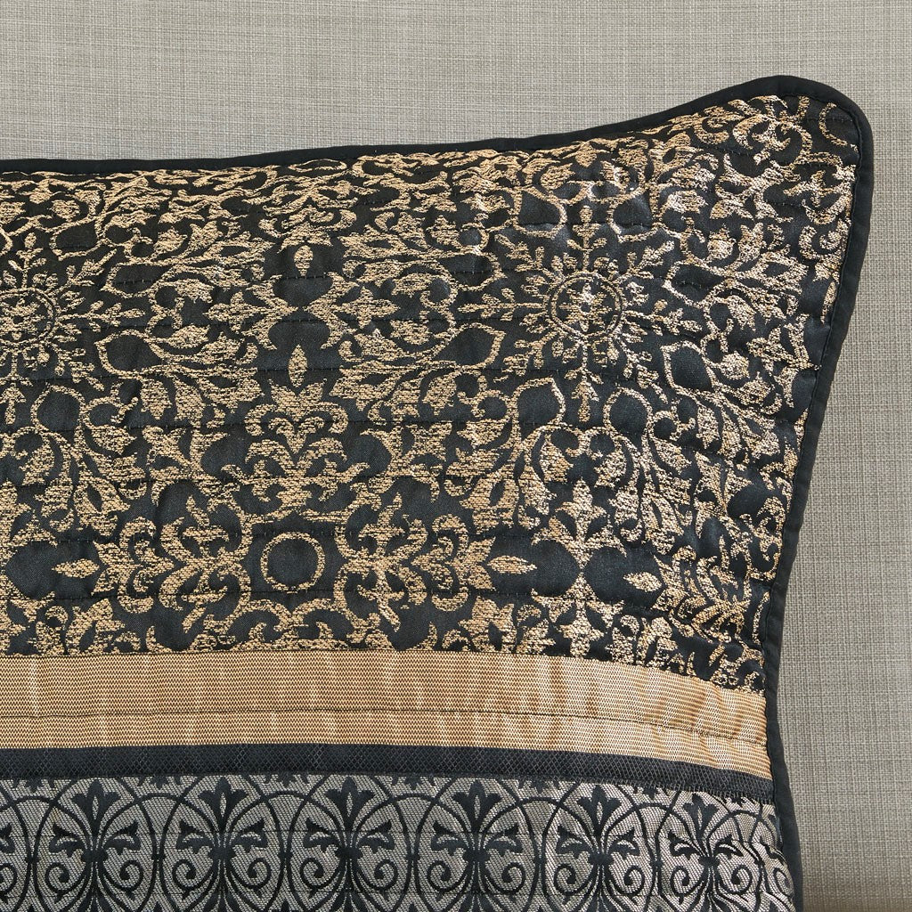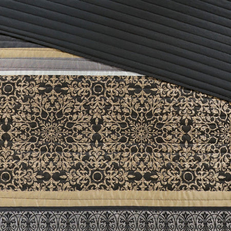 Paige 3 Piece Jacquard Quilt Set - Black / Gold - Full Size / Queen Size