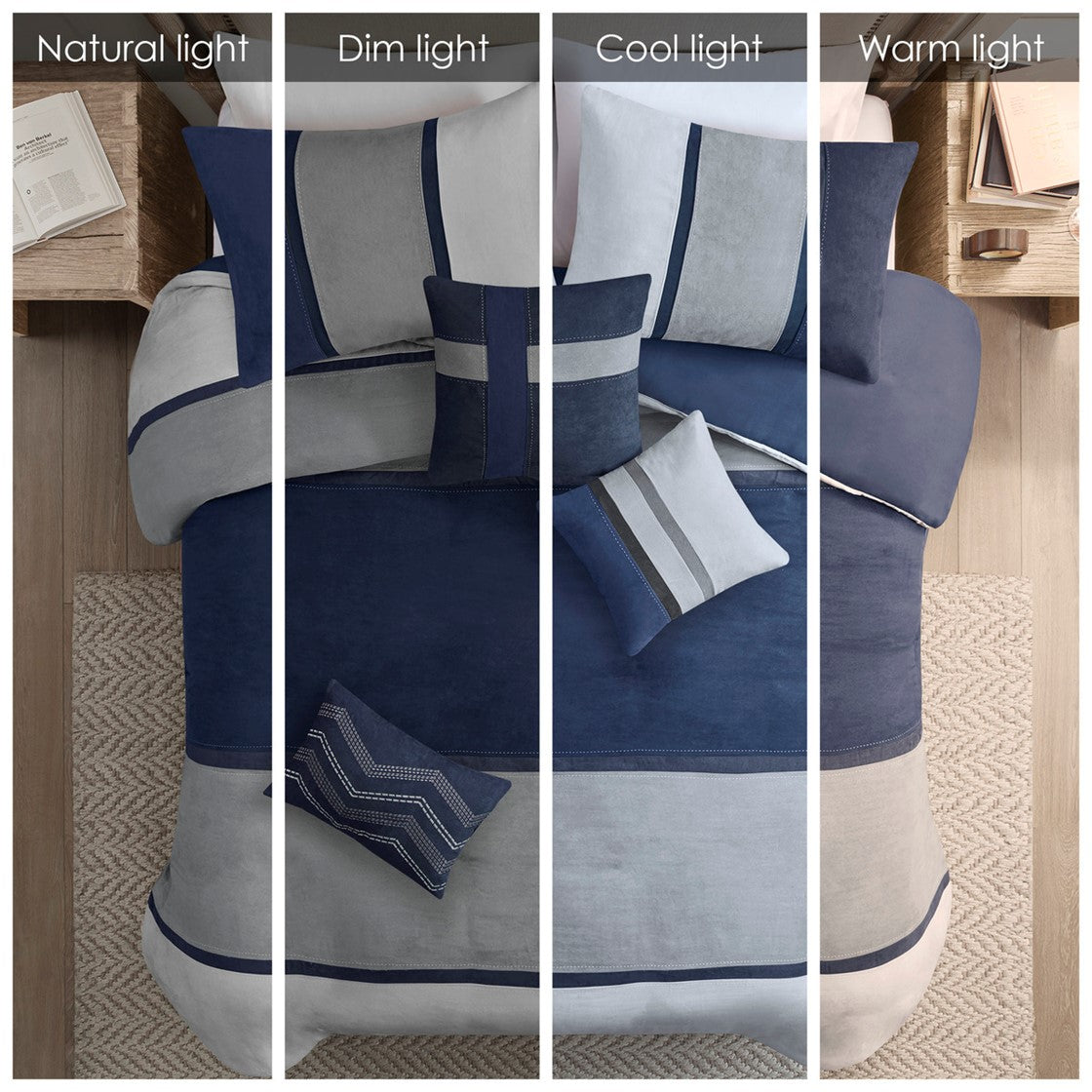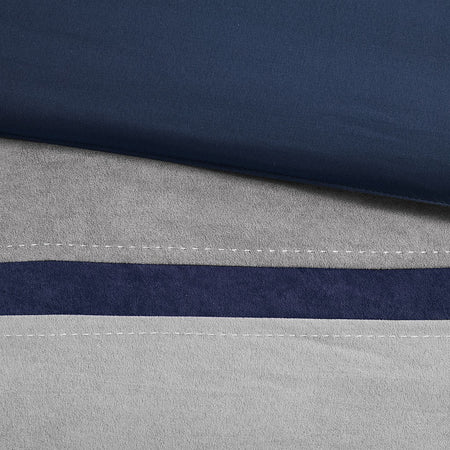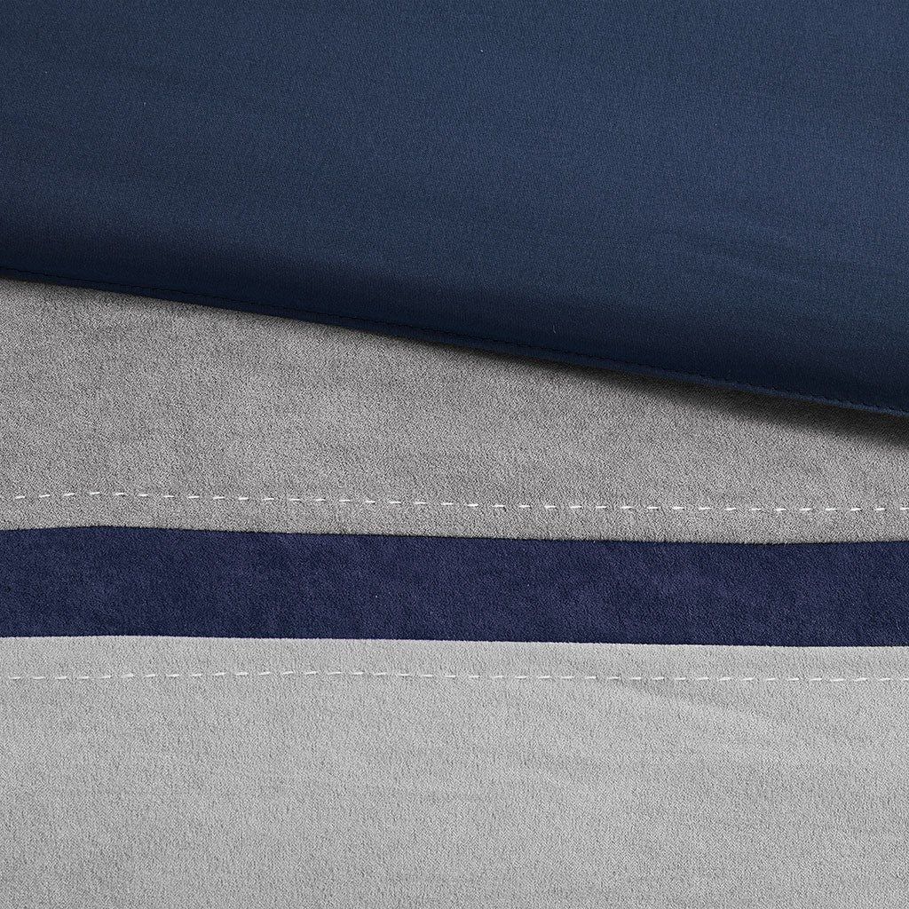 - Colorblock comforter set in top stitching details on the comforter