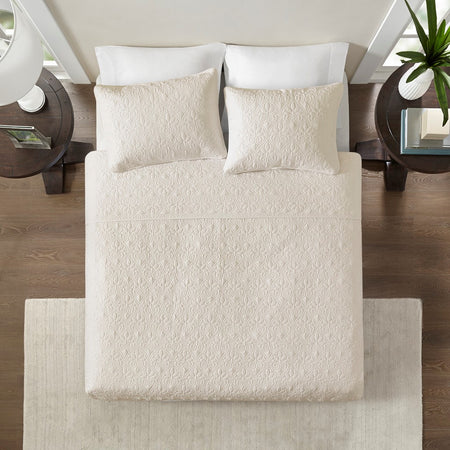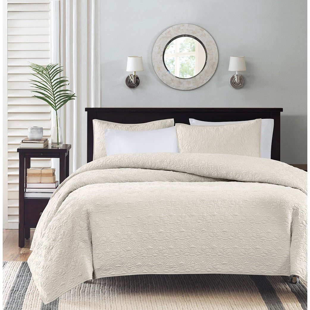 The Madison Park Quebec Reversible Coverlet Set offers a charming cottage-inspired update to your bedroom. The coverlet and shams (1 in Twin/TwinXL) flaunt a classic stitch pattern that creates a rich depth and texture on the face of the bedding set. Prewashed cotton filling provides added comfort and durability making it the perfect for use in the summer or as a layering piece in the winter. This coverlet also has an antimicrobial treatment that provides built-in freshness protection, reducing the growth of odor causing bacteria to keep fabric lasting longer.