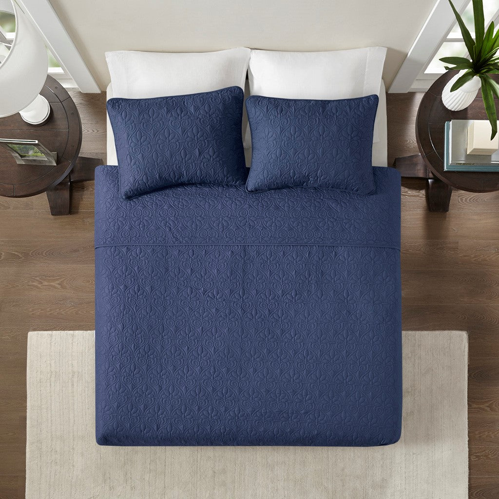 The Madison Park Quebec Reversible Coverlet Set offers a charming cottage-inspired update to your bedroom. The coverlet and shams (1 in Twin/TwinXL) flaunt a classic stitch pattern that creates a rich depth and texture on the face of the bedding set. Prewashed cotton filling provides added comfort and durability making it the perfect for use in the summer or as a layering piece in the winter. This coverlet also has an antimicrobial treatment that provides built-in freshness protection, reducing the growth of odor causing bacteria to keep fabric lasting longer.