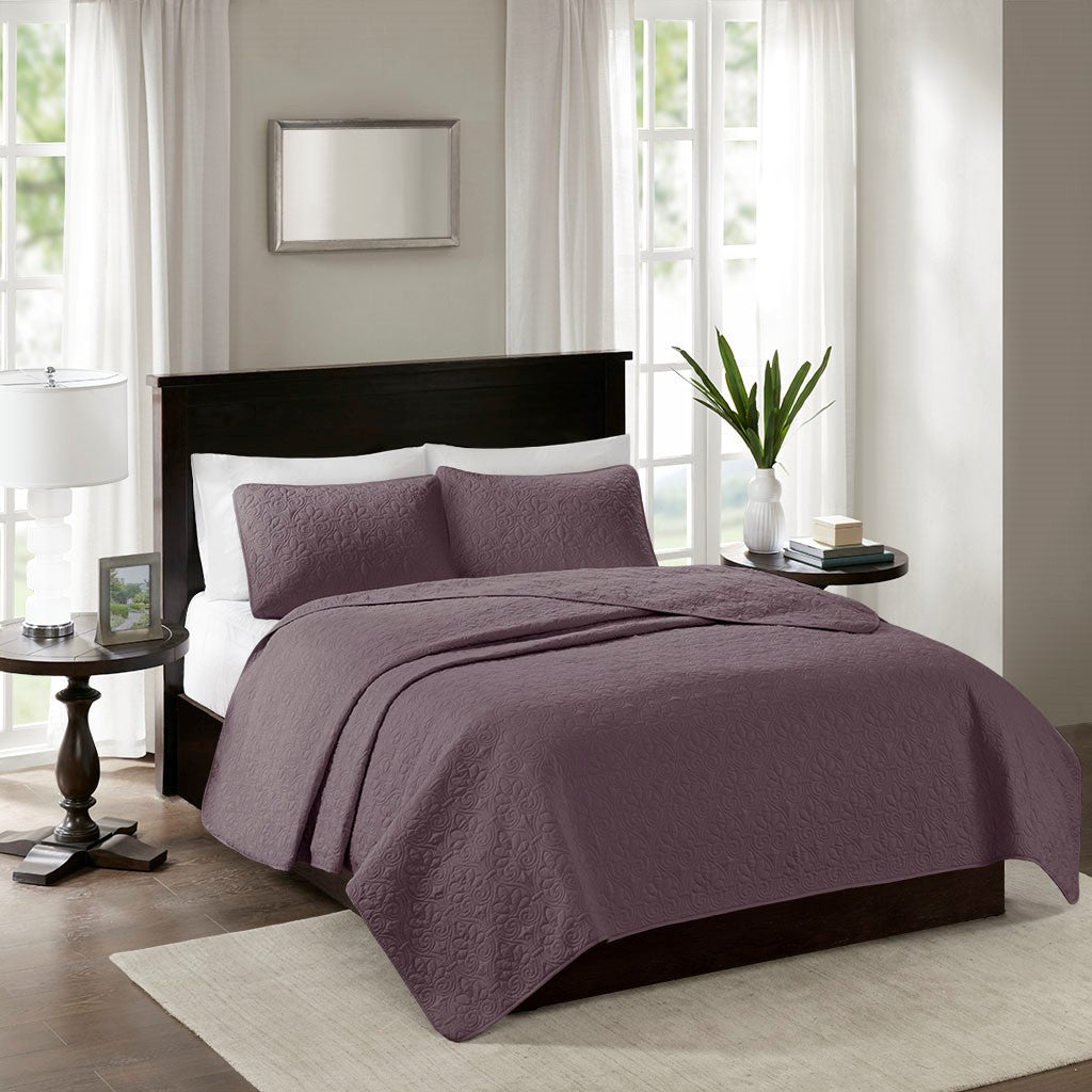 Quebec Reversible Quilt Set - Purple - Full Size / Queen Size