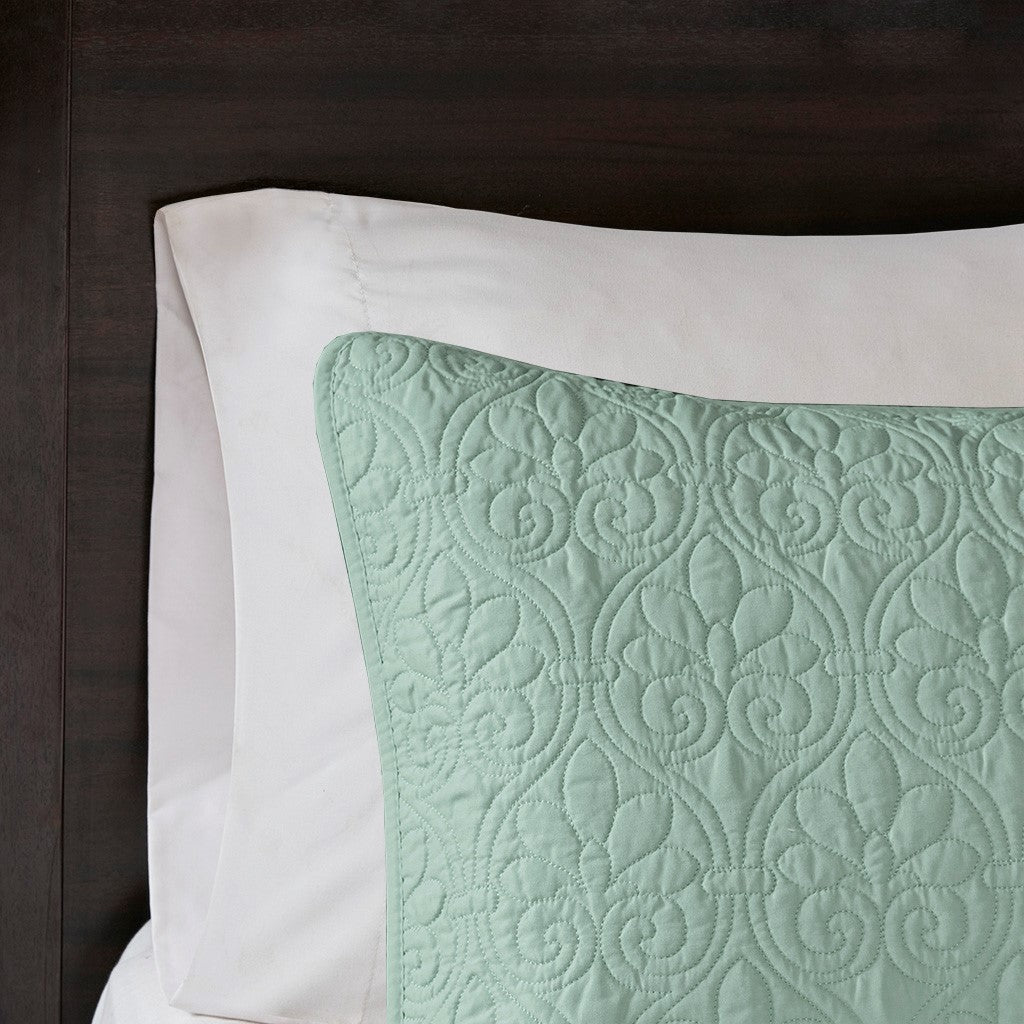 Quebec Reversible Quilt Set - Seafoam - Full Size / Queen Size