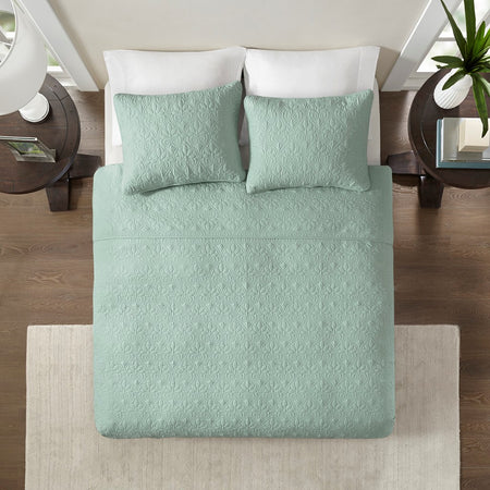 The Madison Park Quebec Reversible Coverlet Set offers a charming cottage-inspired update to your bedroom. The coverlet and shams (1 in Twin/TwinXL) flaunt a classic stitch pattern that creates a rich depth and texture on the face of the bedding set. Prewashed cotton filling provides added comfort and durability making it the perfect for use in the summer or as a layering piece in the winter. This coverlet also has an antimicrobial treatment that provides built-in freshness protection, reducing the growth of odor causing bacteria to keep fabric lasting longer.