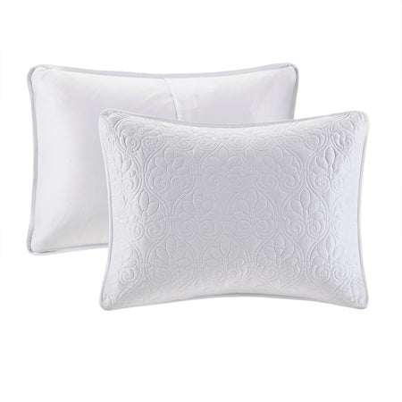 The Madison Park Quebec Reversible Coverlet Set offers a charming cottage-inspired update to your bedroom. The coverlet and shams (1 in Twin/TwinXL) flaunt a classic stitch pattern that creates a rich depth and texture on the face of the bedding set. Prewashed cotton filling provides added comfort and durability making it the perfect for use in the summer or as a layering piece in the winter. This coverlet also has an antimicrobial treatment that provides built-in freshness protection, reducing the growth of odor causing bacteria to keep fabric lasting longer.