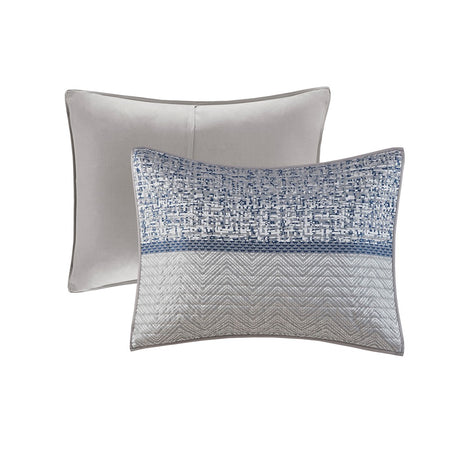 Rhapsody 6 Piece Reversible Jacquard Quilt Set with Throw Pillows - Navy - Full Size / Queen Size