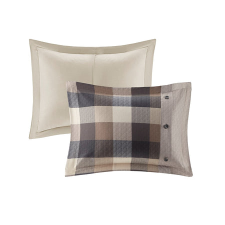 For an irresistibly warm and comfortable look, Madison Park Ridge 6 Piece Herringbone Duvet Cover Set is the perfect update to your bed. This duvet cover sports a buffalo plaid pattern printed on herringbone fabric, for a cabin-inspired look. The bold design gives way to a printed herringbone border at the foot of the bed, adding a charming touch. Coordinating shams mimic the style of the comforter, enhancing the warm and cozy lodge aesthetic. Three decorative pillows with hand-stitched embroidered details bring texture and dimension to the top of the bed. A button closure secures a comforter insert within the duvet cover and inside ties in the corners prevent it from shifting (insert is NOT included). Items in the set may come in a rolled or compressed packaging, which will need to be fluffed up or steam ironed before use to remove wrinkles.