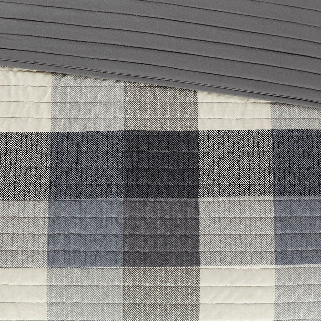 For an irresistibly warm and comfortable look, Madison Park's Ridge 6 Piece Reversible Herringbone Coverlet is the perfect update to your space. This rich quilted coverlet sports a bold buffalo plaid pattern that is printed on the herringbone fabric. The striking design gives way to a printed herringbone border at the foot of the bed for additional charm. Coordinating shams mimic the style of the coverlet, enhancing the warm and cozy lodge aesthetic. Three decorative pillows with hand-stitched embroidered details bring texture and dimension to the top of the bed. Items in the set may come in a rolled or compressed packaging, which will need to be fluffed up or steam ironed before use to remove wrinkles.