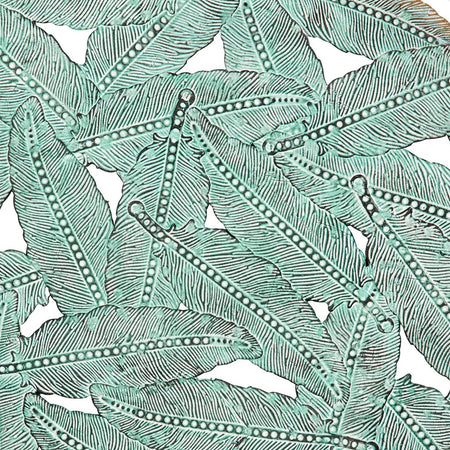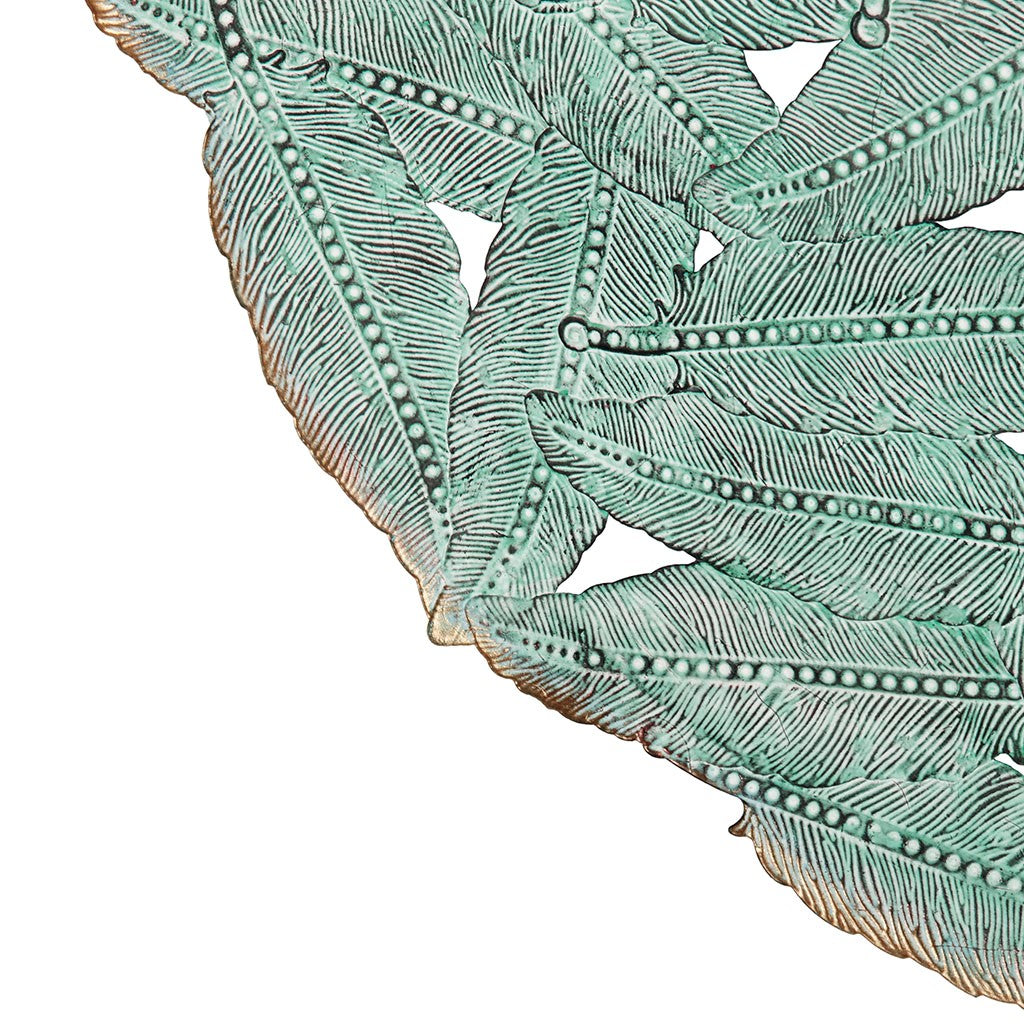 Line your walls with our Madison Park Feather Iron Painted Wall Decor 3 Piece Set. Painted with a beautiful blue hued iron finish, this wall decor set offers a splash of color to any room. The feather cutout design is made of a 100% metal material and features attached hook rings on each piece to easily mount on your wall. Available in a set of three, this alternative metal wall decor can be hung together to bring life to any bare wall or hang separately for a little pop throughout your room or home.