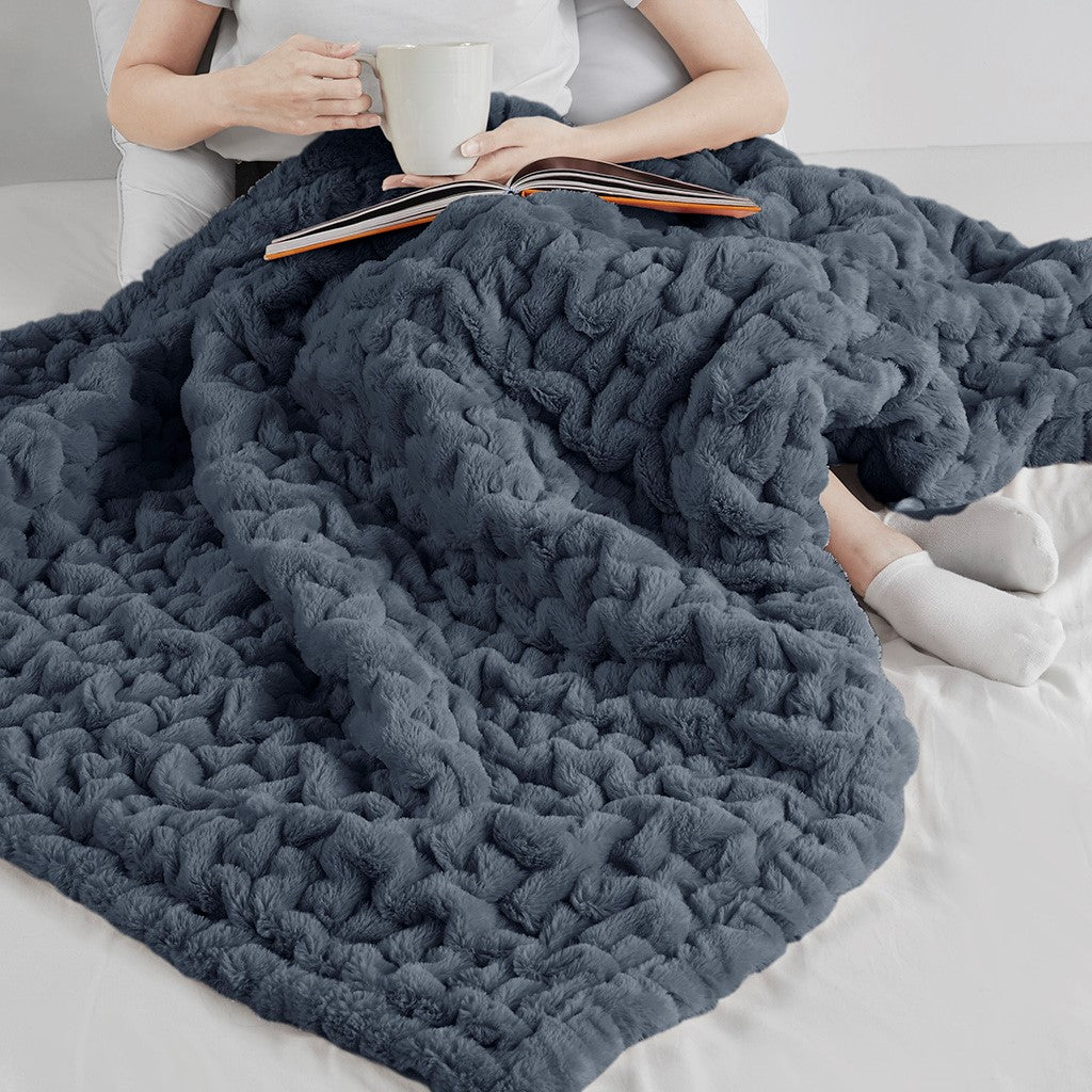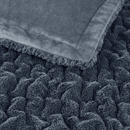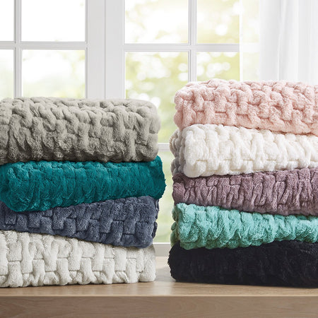 Add a modern and sophisticated touch to any space with the Madison Park Ruched Fur Throw. This throw features a solid ruched fur pattern, reversing to a faux mink to keep you warm and cozy. Machine washable for easy care, this throw is OEKO-TEX certified, meaning it does not contain any harmful substances or chemicals to ensure quality comfort and wellness.