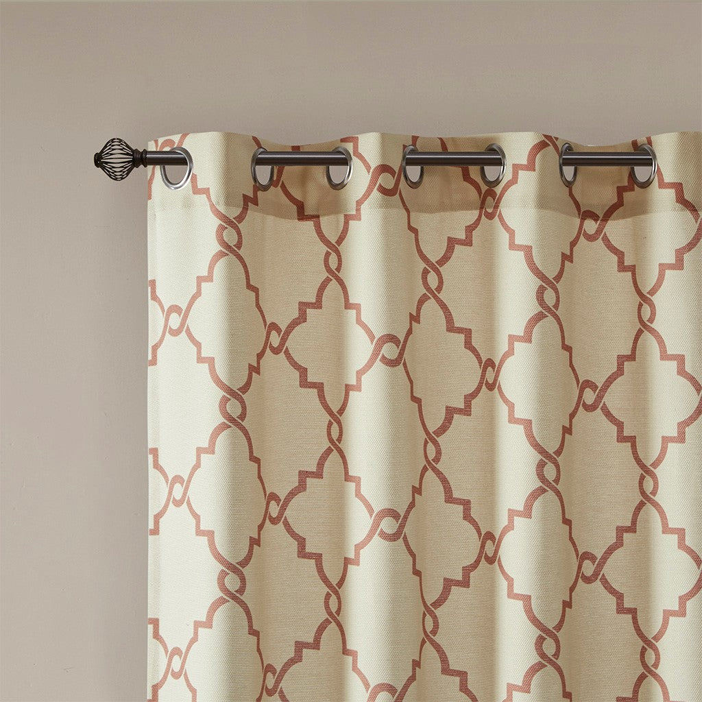 The Madison Park Saratoga Fret Print Panel is the perfect addition for a casual and stylish update to your home decor. This window panel features a trendy spice fretwork on a soft beige ground, creating a simple yet modern look. The cotton blend basket weave fabric softly filters the perfect amount of sunlight into your home, while providing texture for natural appeal. Silver grommet top detail makes this panel easy to hang, open, and close throughout the day. Fits up to a 1.25" diameter rod. Pattern position may vary per panel due to random cutting of fabric.