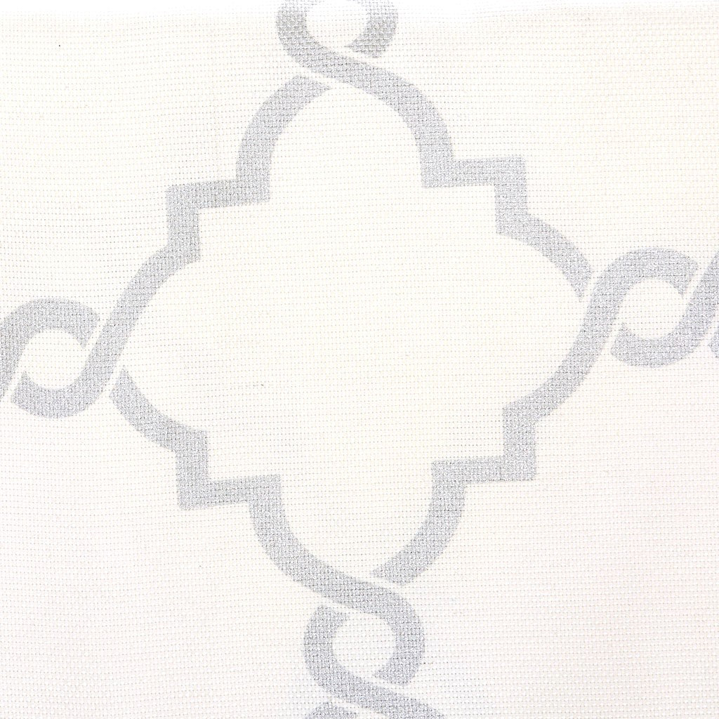 The Madison Park Saratoga Fret Print Panel is the perfect addition for a casual and stylish update to your home decor. This window panel features a trendy metallic silver fretwork on a soft ivory ground, creating a simple yet modern look. The cotton blend basket weave fabric softly filters the perfect amount of sunlight into your home, while providing texture for natural appeal. Silver grommet top detail makes this panel easy to hang, open, and close throughout the day. Fits up to a 1.25" diameter rod. Pattern position may vary per panel due to random cutting of fabric.