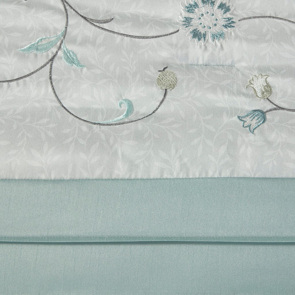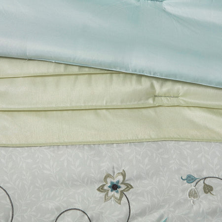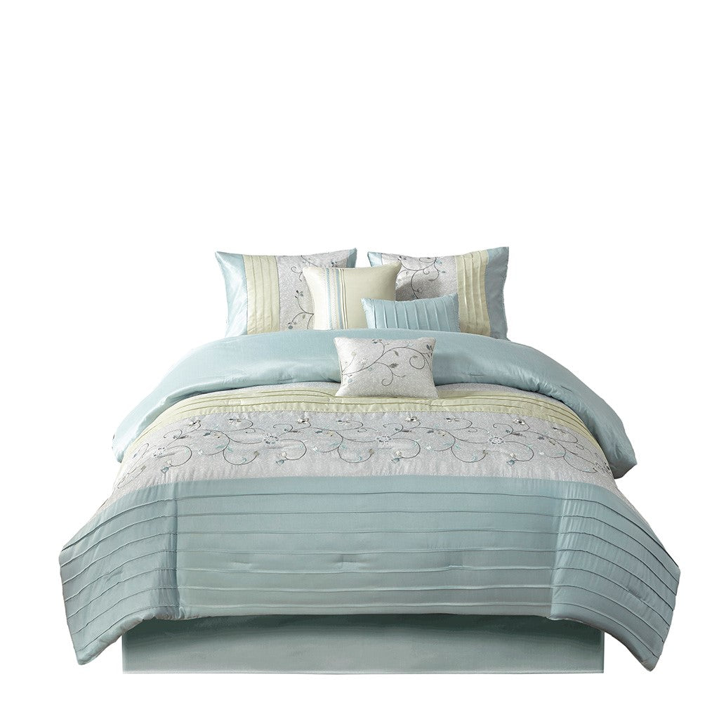 Serene Embroidered 7 Piece Comforter Set - Aqua - Cal King Size