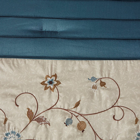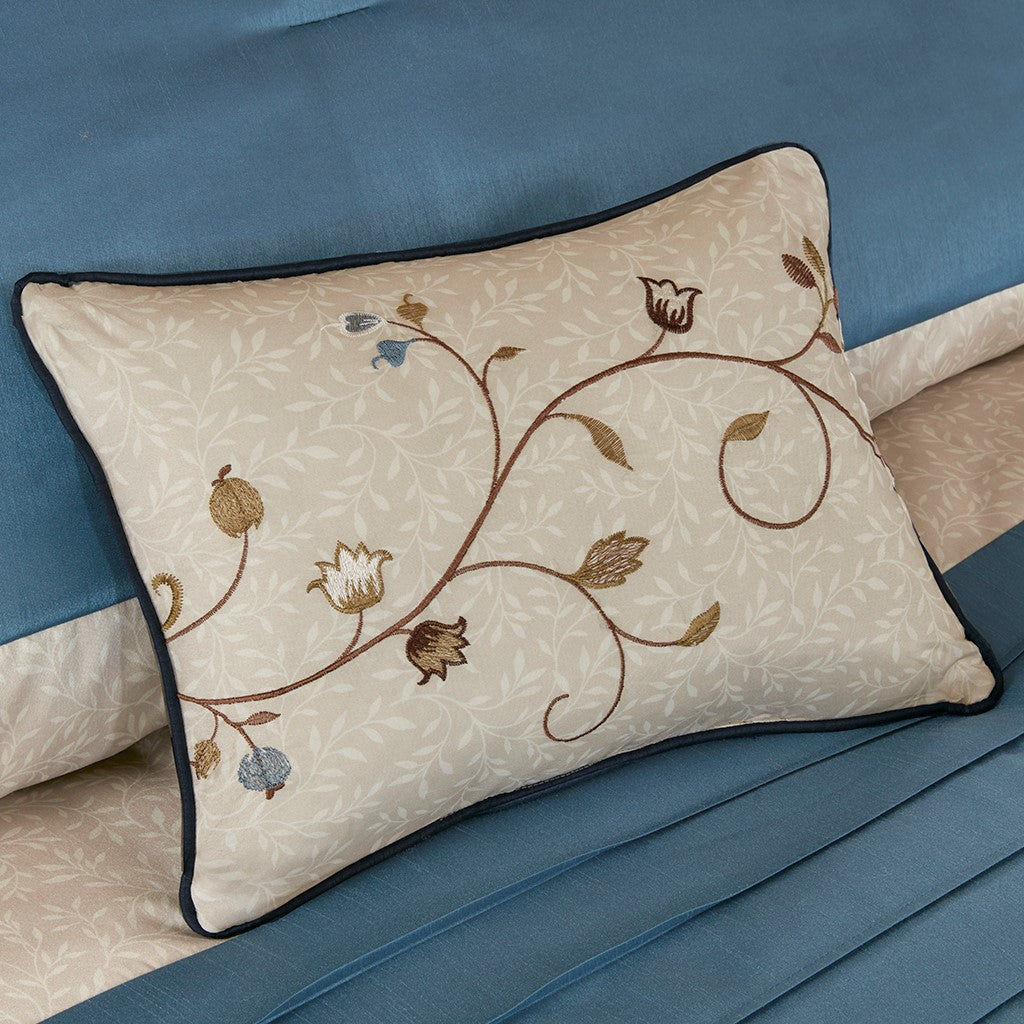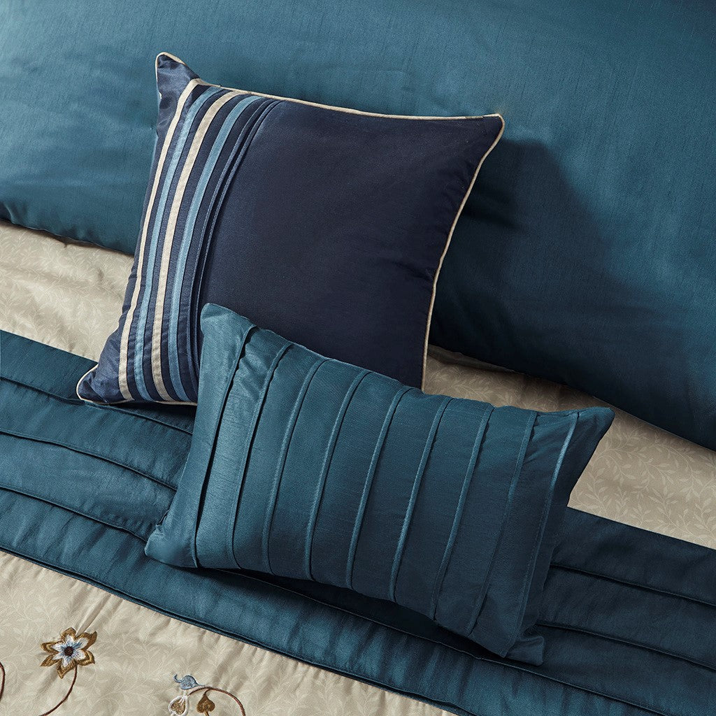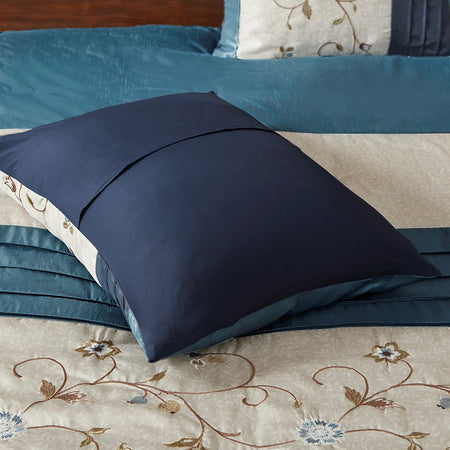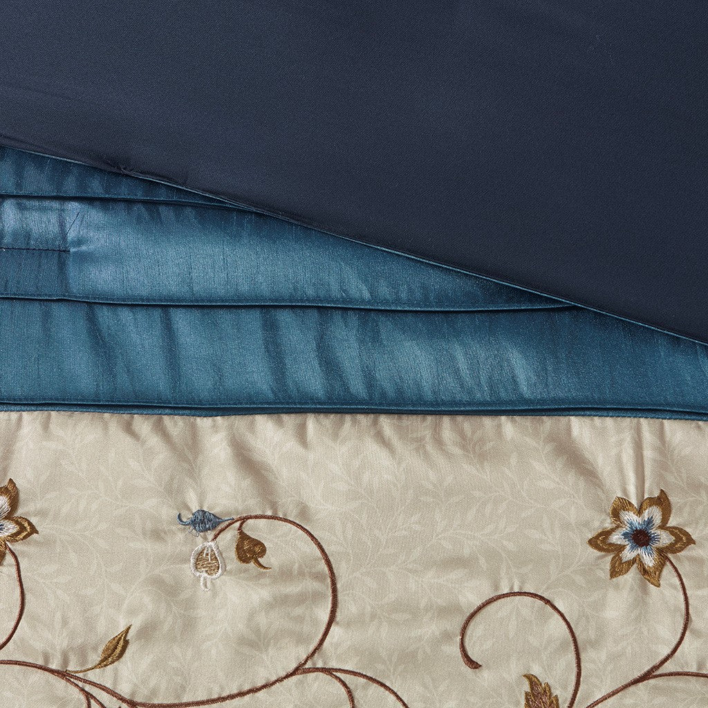 Serene Embroidered 7 Piece Comforter Set - Navy - Queen Size