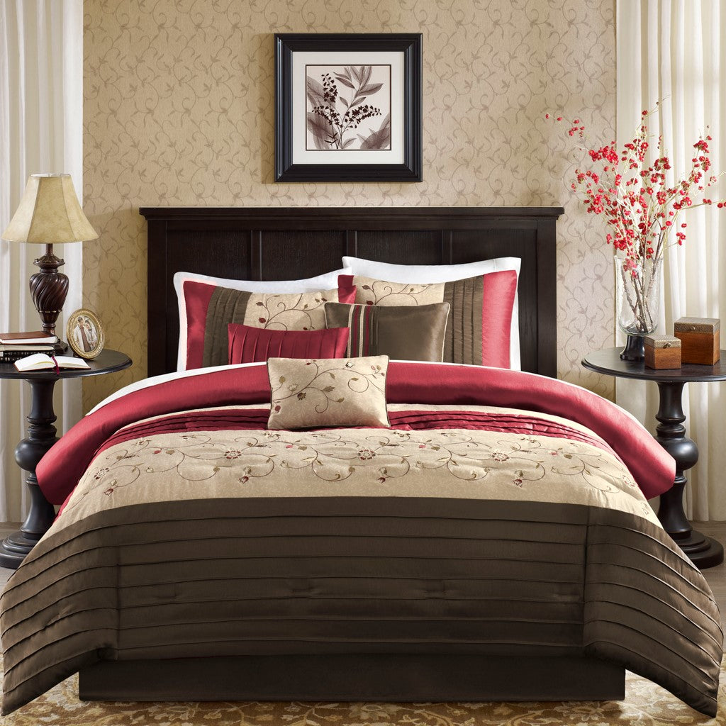 Serene Embroidered 7 Piece Comforter Set - Red - King Size