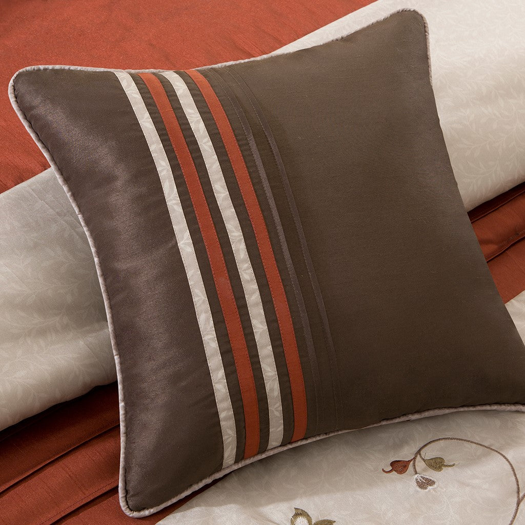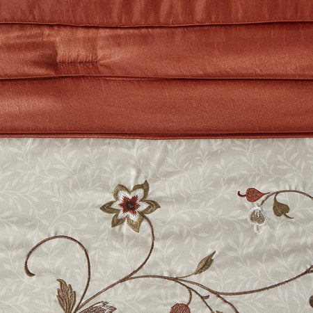 Serene Embroidered 7 Piece Comforter Set - Spice - King Size