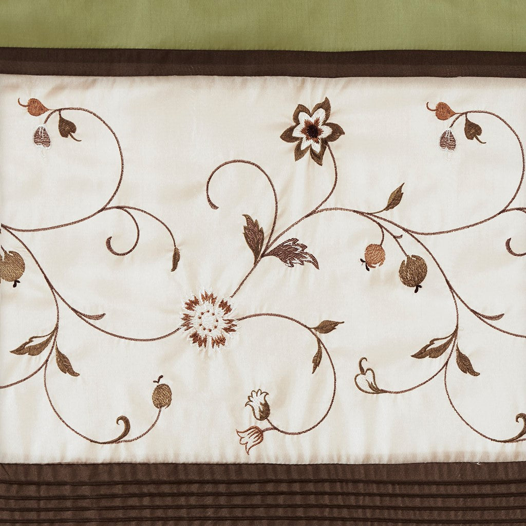 Add simple elegance to any room with the Madison Park Serene Embroidered Window Panel. This window curtain features delicate floral embroidery in soft green and natural hues, offering beautiful contrast for a sophisticated look. The pieced and pleated details provide extra dimension and charm to your home decor, while added lining helps filter the perfect amount of sunlight into your home. Simply hang with rod pocket or backs tabs for a tailored look. Fits up to a 1.25" diameter rod.